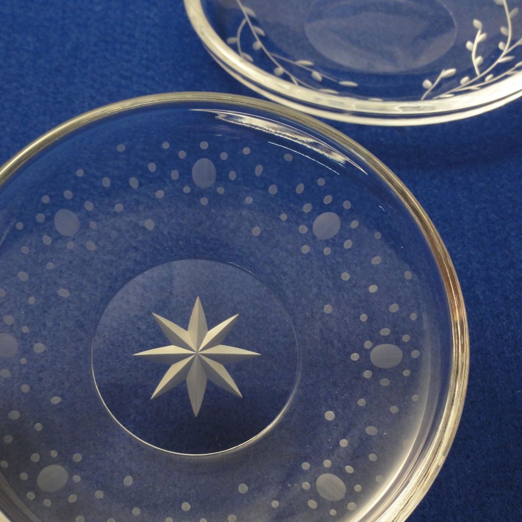 일본의 전통 공예. 다이아몬드 그라인더를 사용하여 컷팅기로 유리그릇에 무늬를 그리는 기법.