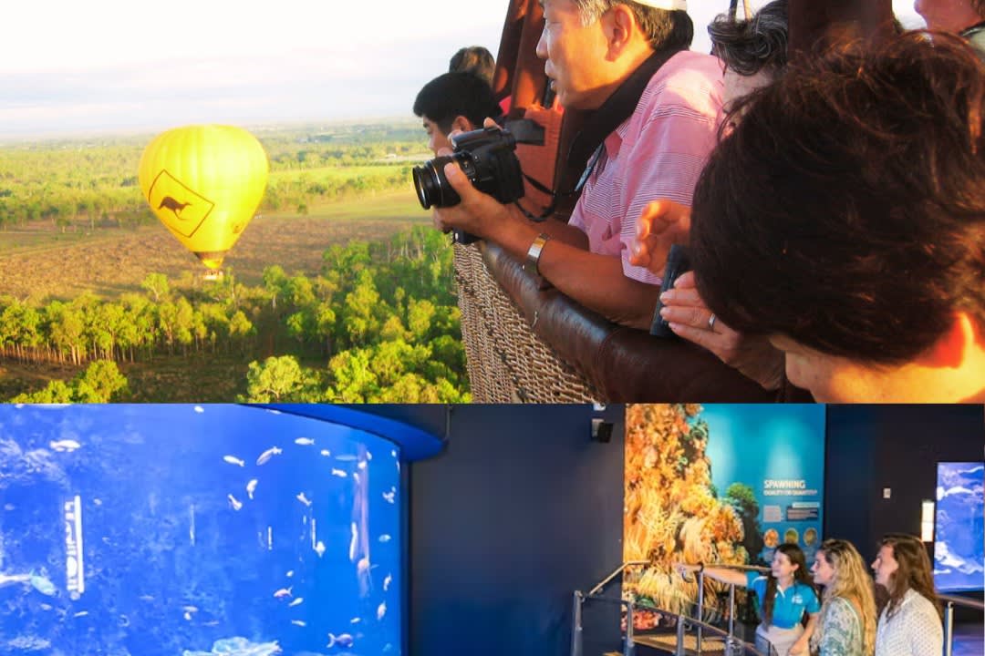 착륙 후에는 가벼운 스낵을 즐기고 스파클링 와인이나 오렌지 주스로 모험을 축하하세요. 비행 후에는 케언즈 아쿠아리움으로 이동하여 호주 유일의 10m 깊이의 딥 리프 탱크, 360도 오셔나리움, 20m 해저 터널, 맹그로브 산책로를 탐험할 수 있습니다.