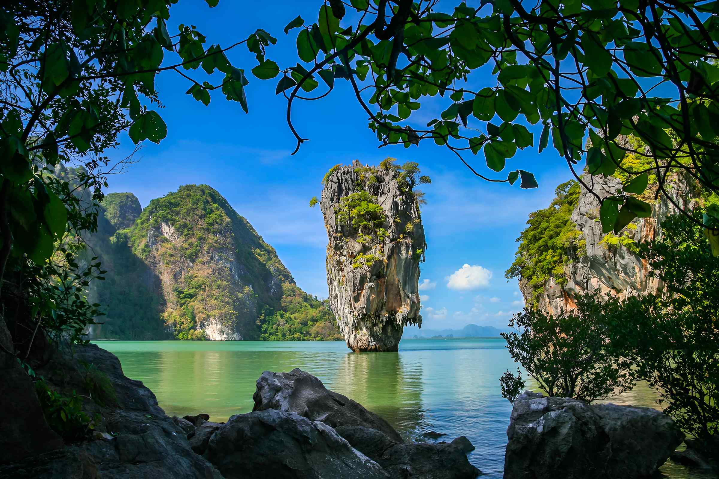 * 반짝이는 물로 둘러싸인 석회암 봉우리로 즉시 알아볼 수 있는 유명한 제임스본드섬을 둘러보세요.