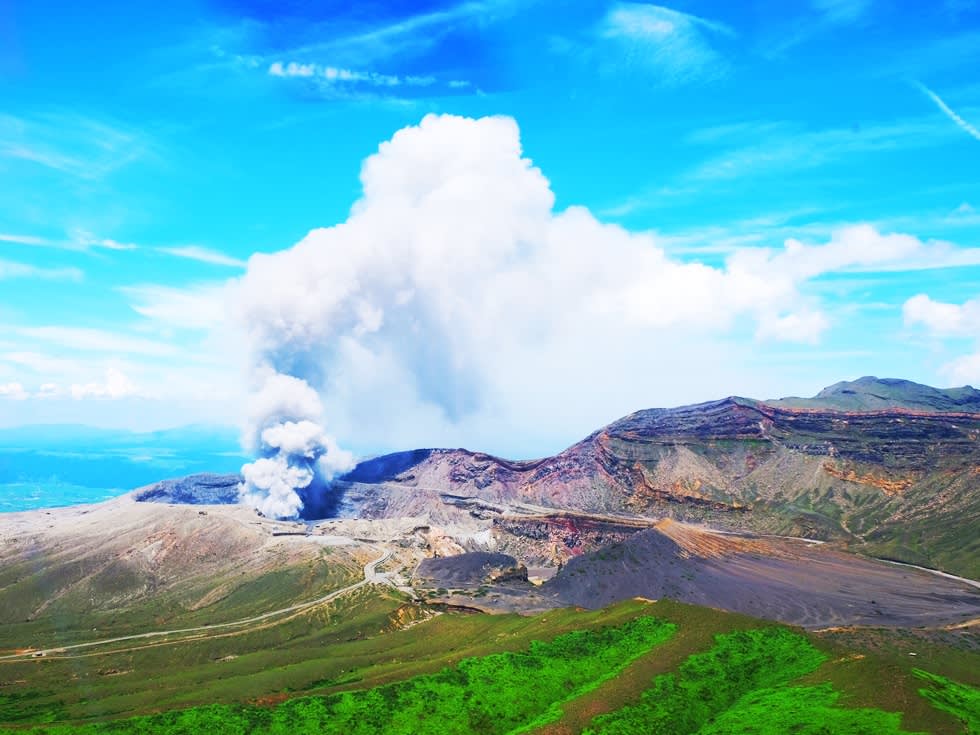 * 화산의 기이한 경관과 초원 풍경, 아소 활화산을 가까이에서 느끼고 구사센리 초원을 거닐기