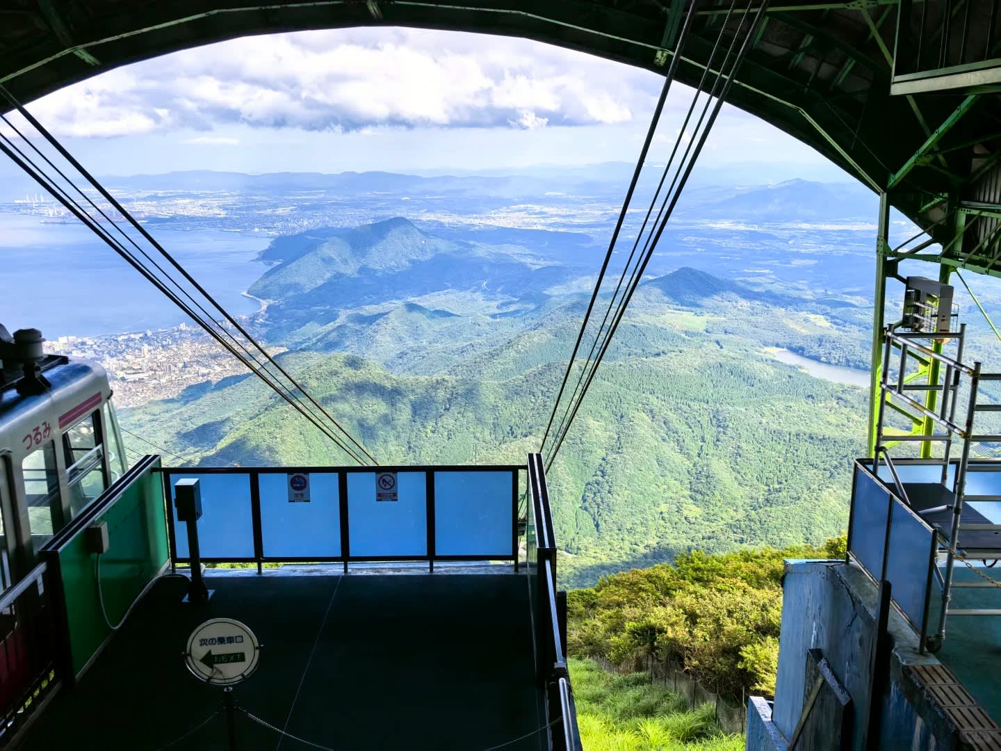 * 공중 케이블카 전경 체험, 벳푸 로프웨이를 타고 360도로 산과 바다의 웅장한 경치를 조망합니다.