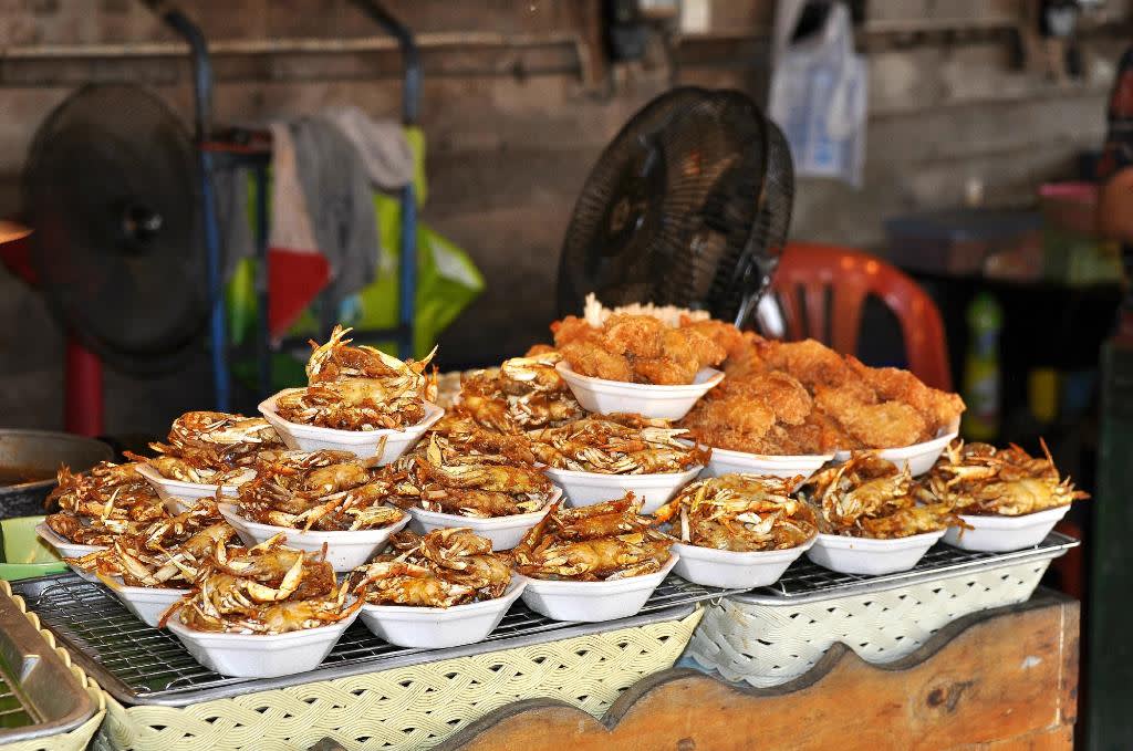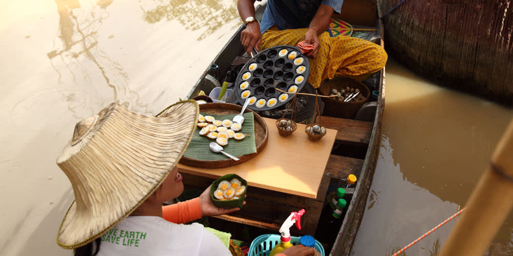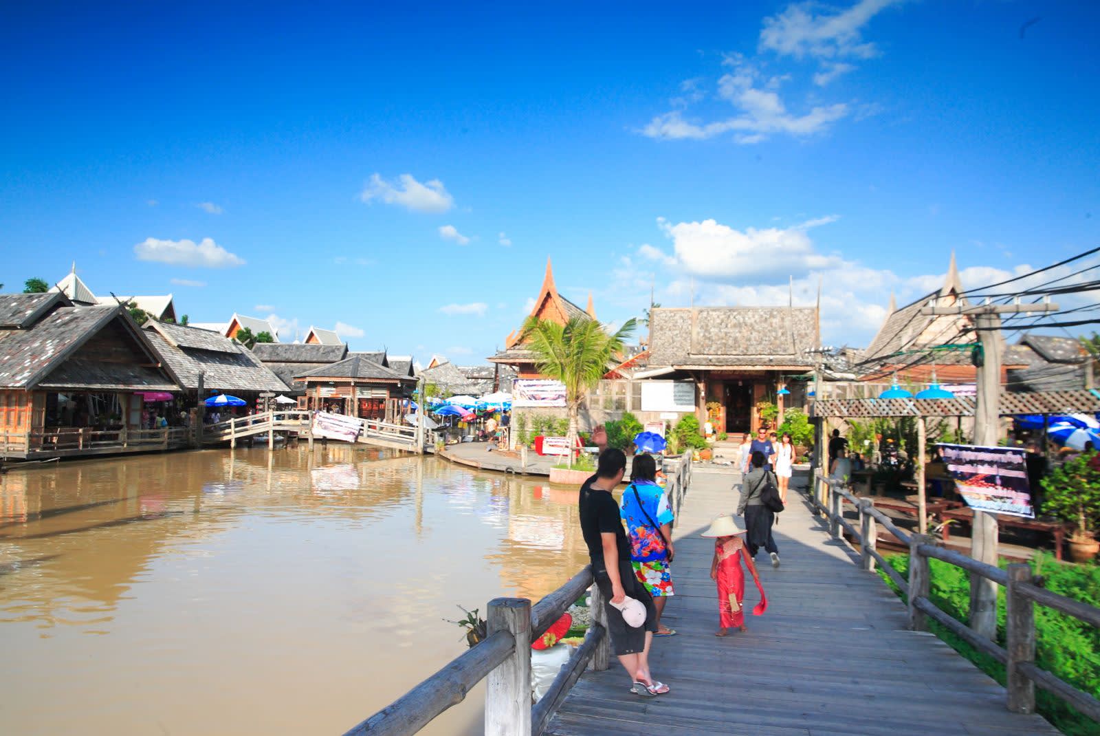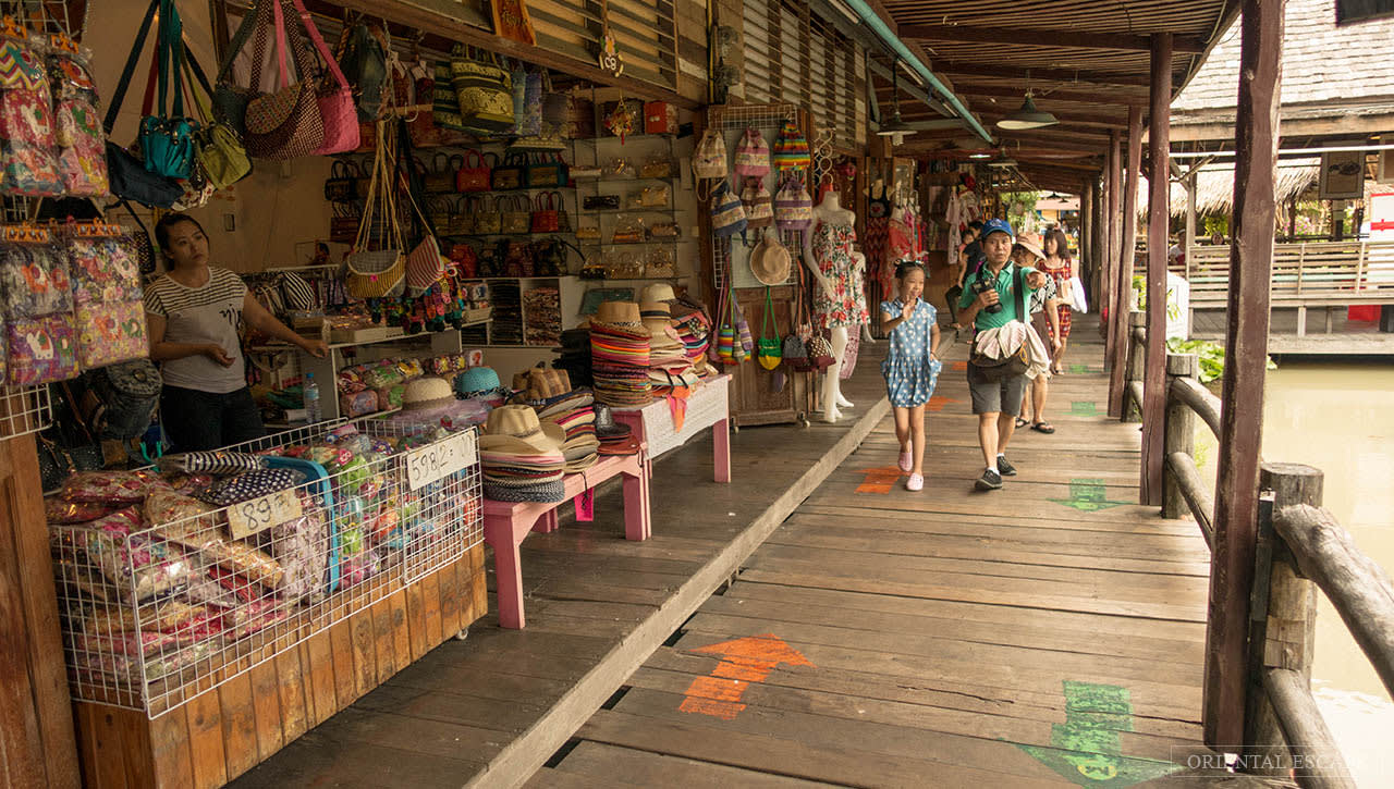 수상 가옥과 태국 전통 음식, 해산물, 과일 등 다양한 먹거리와 공예품 등