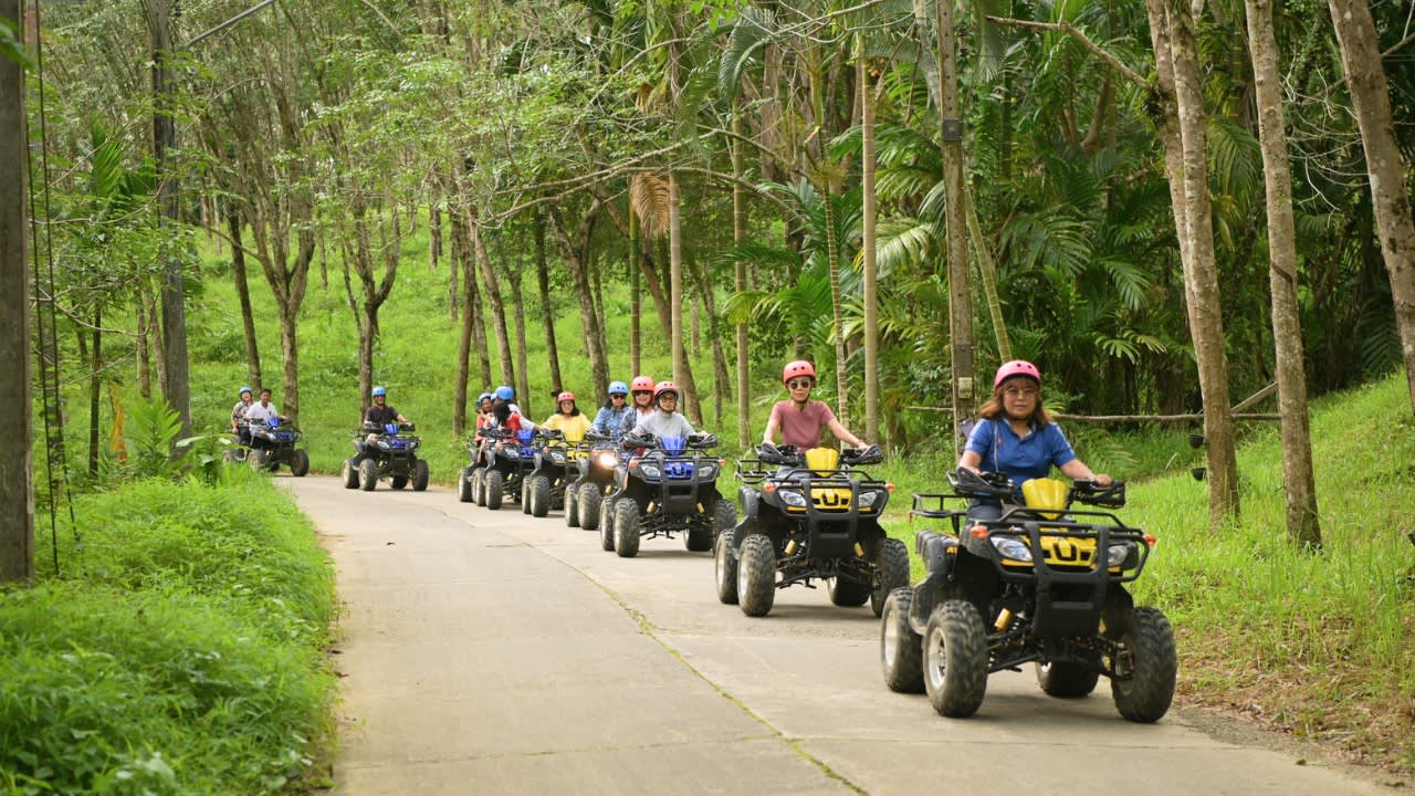 카오락의 아름다운 자연경관에서 잊을 수 없는 하루 종일 모험을 시작하세요. 잔잔한 강을 따라 정통 대나무 뗏목을 타고 평화롭게 흘러가며 여행이 시작됩니다. 이 전통적이고 편안한 뱃놀이는 거대한 고대 석회암 산의 놀라운 경치를 선사합니다. 다음으로, 아드레날린이 솟구치는 경험을 준비하세요! ATV에 올라 험준한 지형과 울창하고 구불구불한 정글 길을 누비며 열대우림을 스릴 넘치고 가까이에서 볼 수 있습니다. 스릴 넘치는 짚라인을 타고 캐노피 위를 높이 날아오르며 흥분은 계속됩니다. 식욕이 돋은 후에는 맛있는 태국식 점심 식사로 에너지를 보충합니다. 마지막으로, 아름다운 카오락 워터사이드에서 상쾌한 수영을 하며 휴식을 취하고 더위를 식히세요.