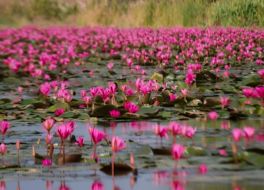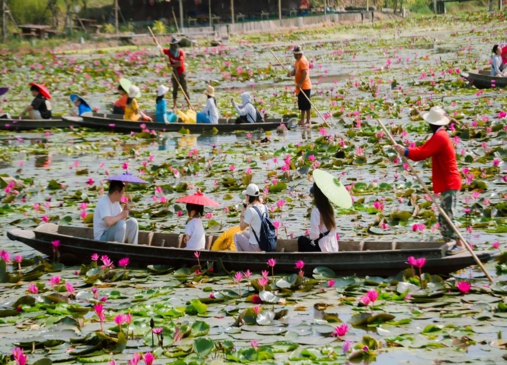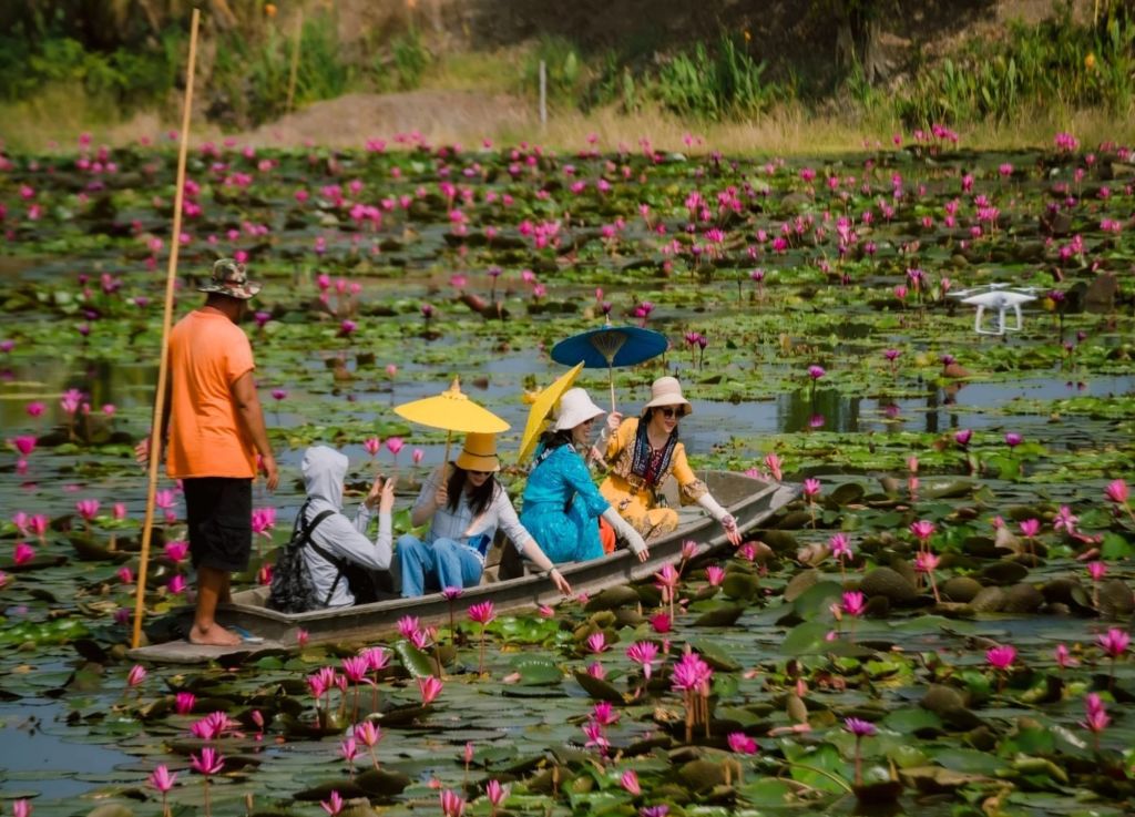 수상 보트를 타며 연꽃이 있는 물 위를 약 20분 동안 다니며, 드론으로 다양한 구도에서 사진과 동영상 촬영을 합니다.