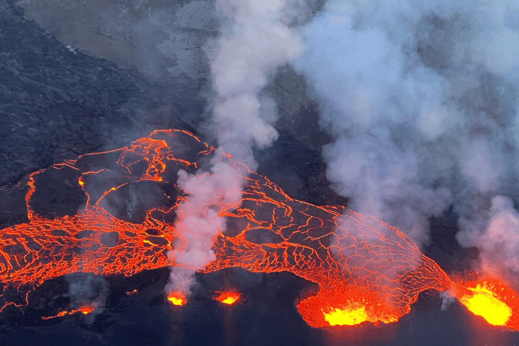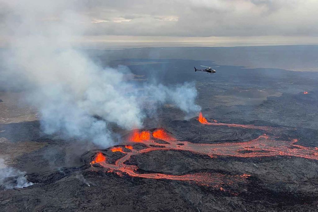 새로 형성된 화산 지역을 상공에서 볼 수 있는 특별한 기회를 즐겨보세요.