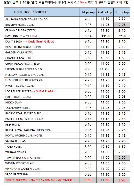 - 렌터카 이용 시 괌 남부관광과 결합하여 더욱 즐거운 여행을 즐길 수 있습니다.