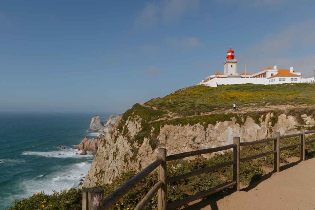 하루를 카보 다 로카에서 시작합니다. 이곳은 한때 알려진 세계의 끝으로 여겨졌던 곳으로, 유럽 대륙의 가장 서쪽 끝에 위치한 험준한 해안 절벽입니다. 대서양을 내려다보는 바람에 휩쓸린 절벽과 광활한 전망은 시인 루이스 데 카모이스가 '땅이 끝나고 바다가 시작되는 곳'이라고 묘사한 이유를 쉽게 이해할 수 있습니다.