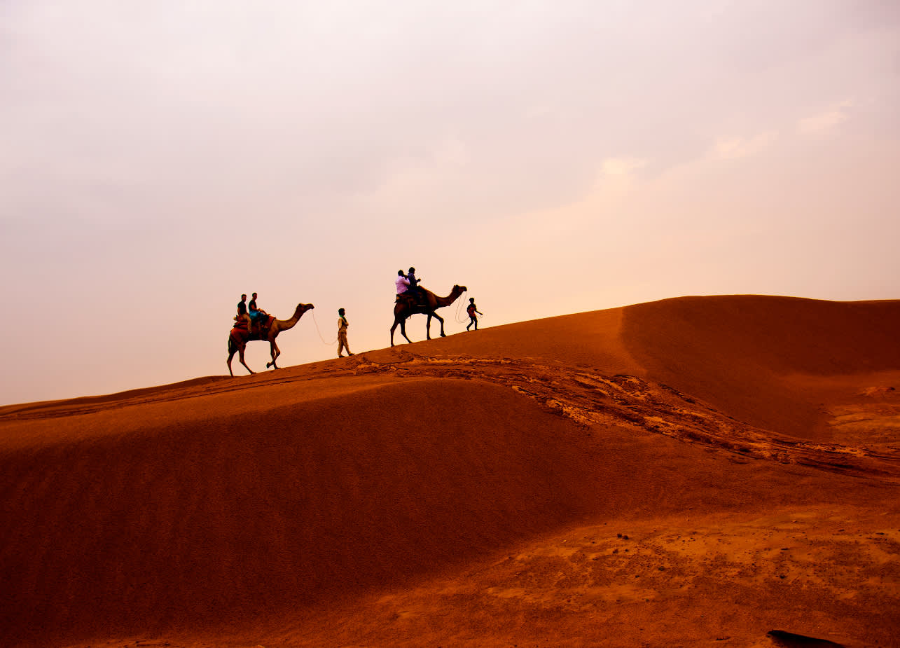 * 에르그 체비 사구에서 낙타를 타고 매혹적인 일몰을 감상해보세요.
