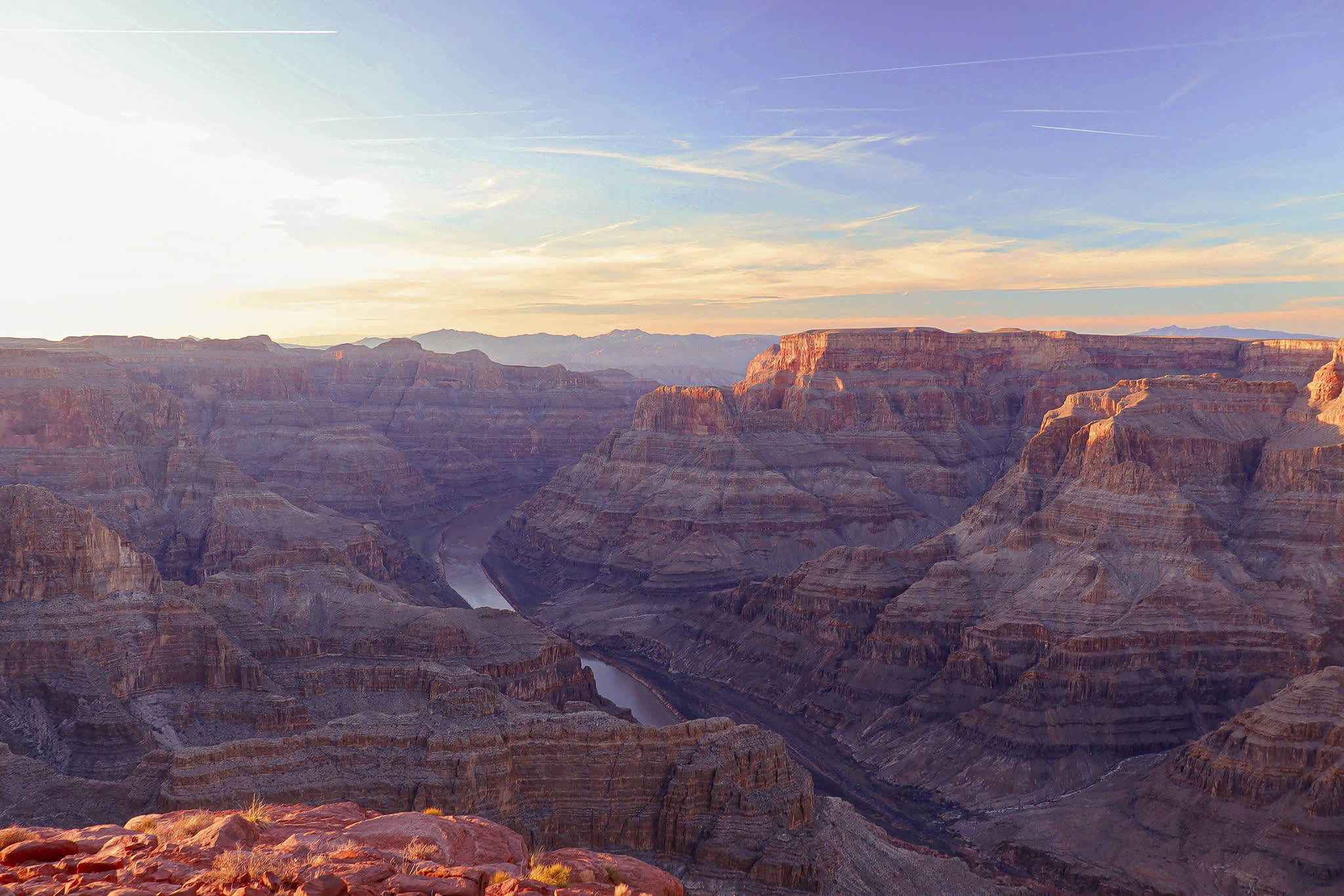 황금빛 모하비 사막, 후버댐의 경이로운 공학 기술, 웅장한 그랜드 워시 절벽을 감상하세요. 그런 다음 콜로라도강에 의해 조각된 거대한 줄무늬 돌벽이 있는 그랜드 캐니언 웨스트림이 눈앞에 펼쳐지는 웅장한 피날레를 장식합니다. 잊을 수 없는 이 공중 경험은 자연의 웅장함에 대한 영원한 추억을 가슴속에 새겨줄 것입니다.