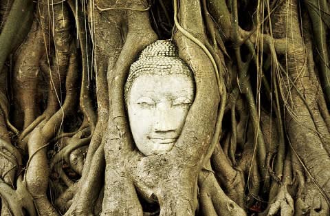 왓 마하탓에서 가장 유명한 것은 나무뿌리에 감긴 불상의 머리입니다. 미얀마 군에 의해 모든 사원이 파괴되고 불상의 머리가 잘려 나갔는데 이때 잘려 나간 불상의 머리가 나무뿌리에 감겨 환생의 의미로 아유타야를 대표하는 유물이 되었습니다.