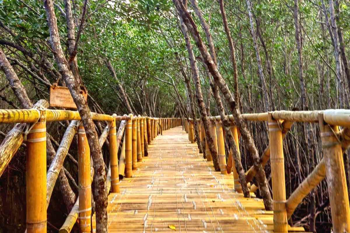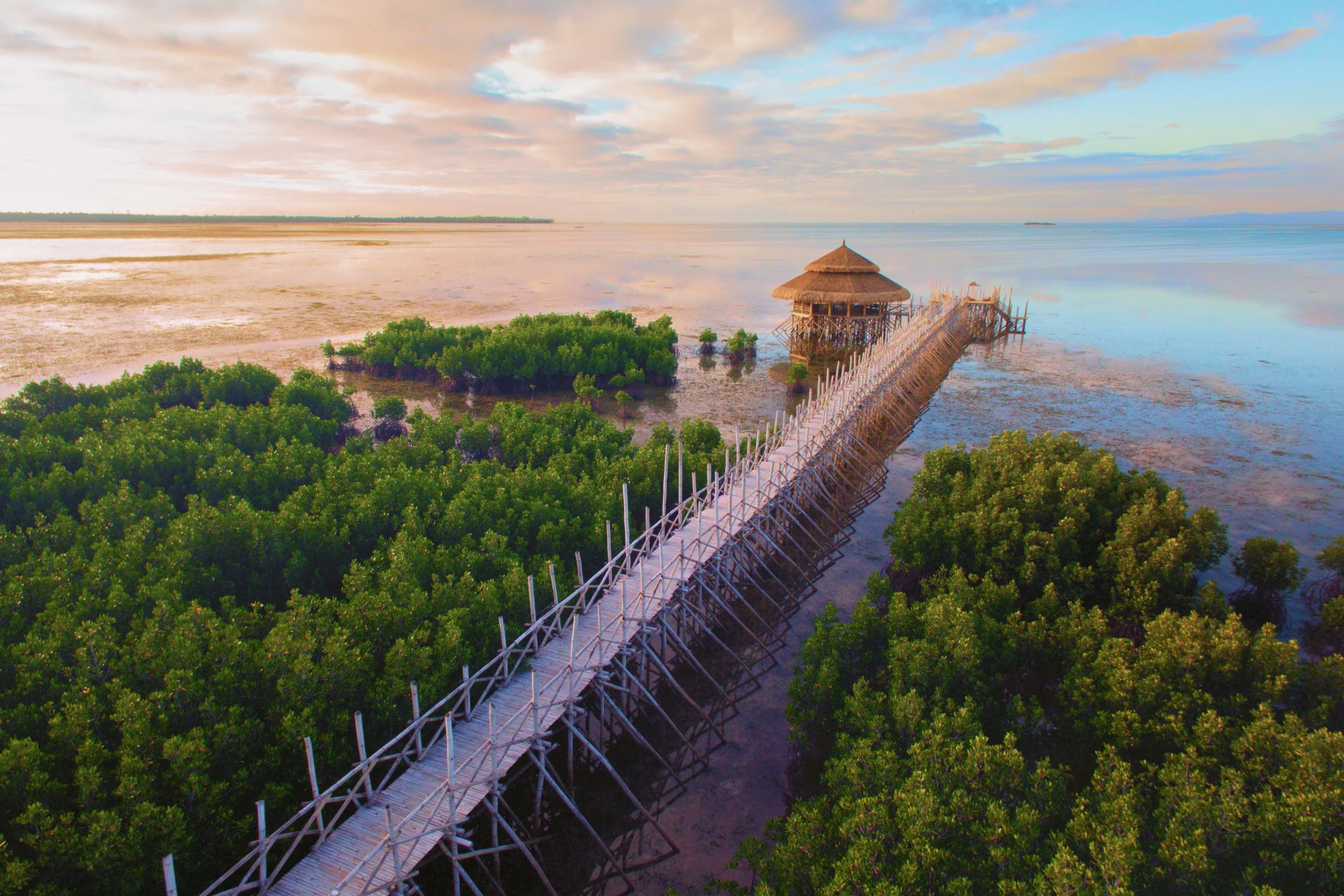 * 울창한 맹그로브 숲을 가로질러 바다로 이어지는 1,000m 길이의 대나무 산책로를 거닐며 숨 막힐 듯 아름다운 석양을 감상하세요.