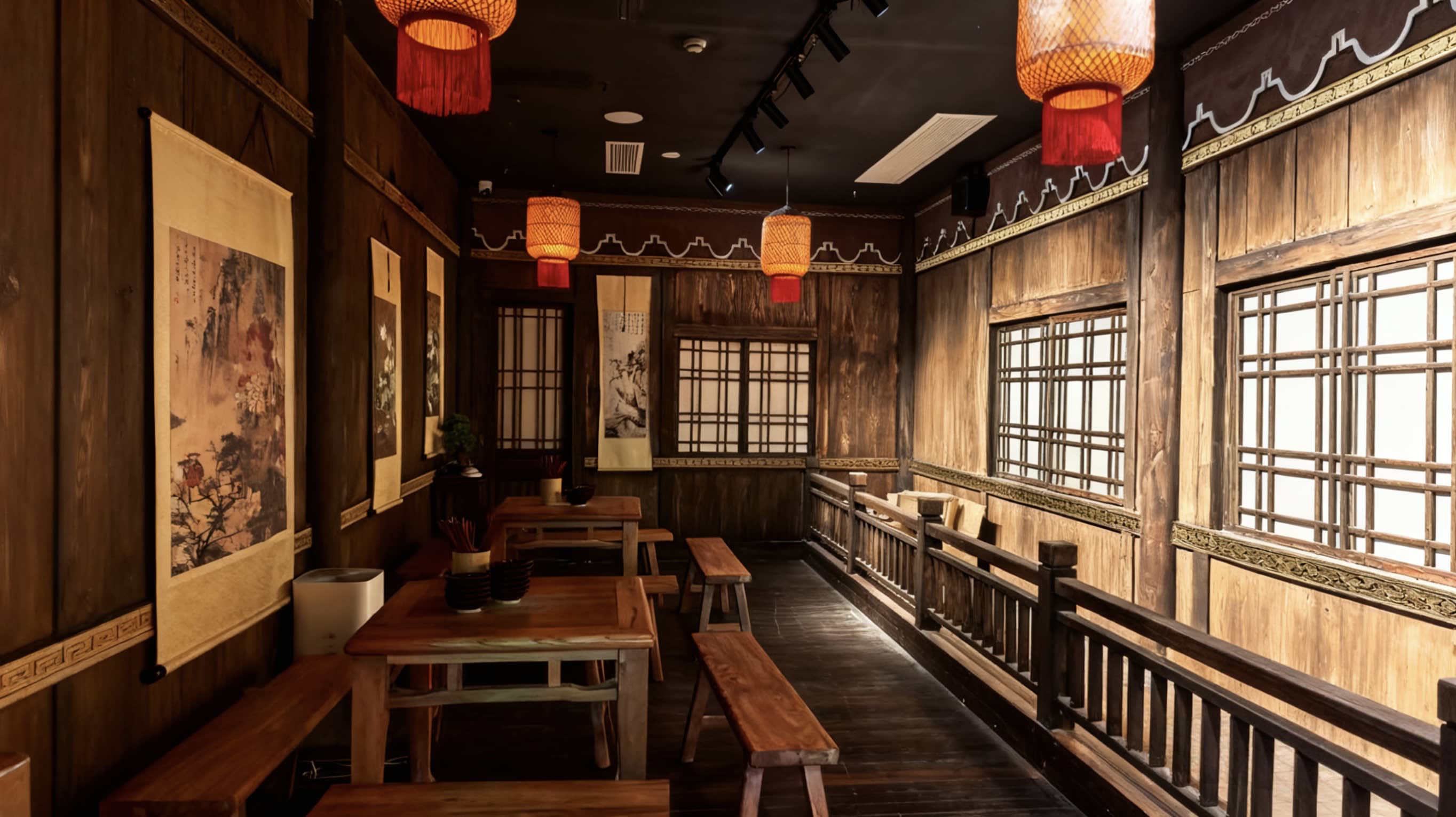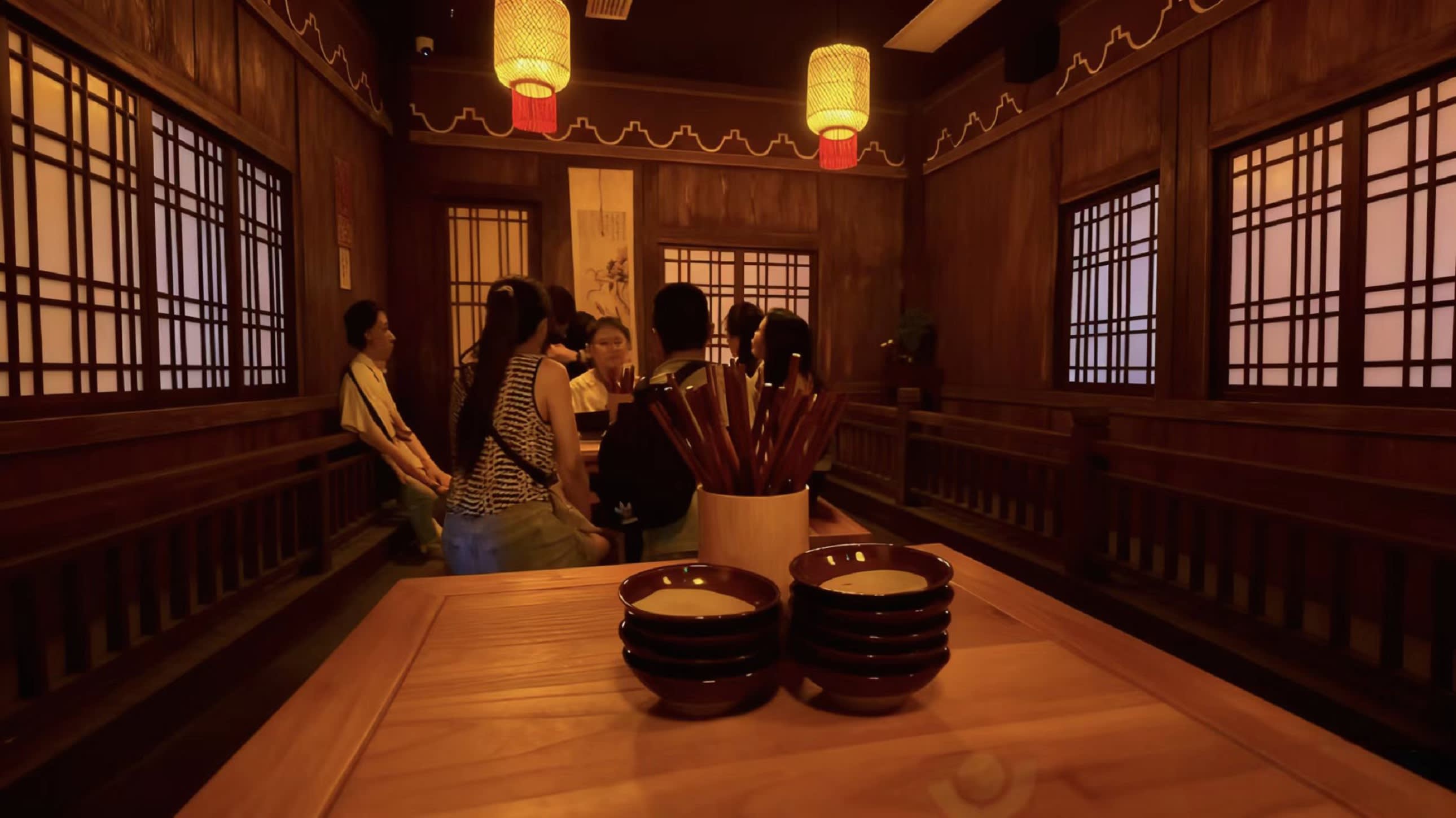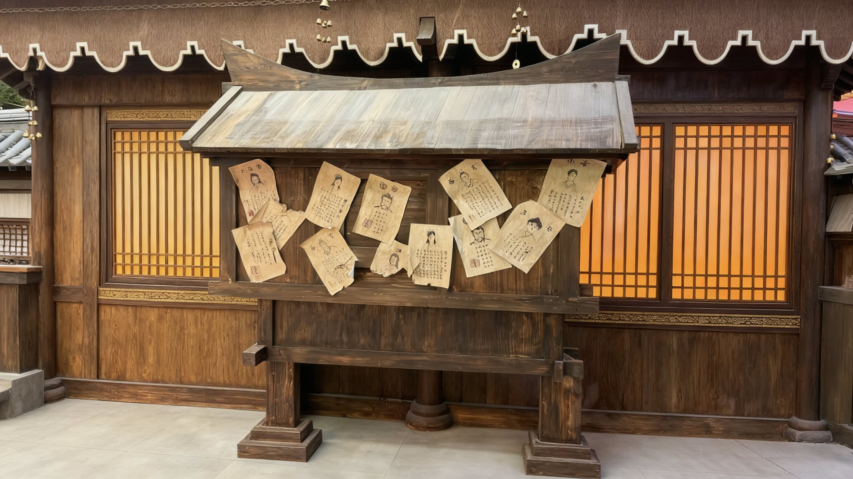 * 극장에 들어서면 주홍 궁궐 담벼락 아래 금빛 등불이 흔들리고, 서역 상점의 선반 위 유리 그릇이 이국적인 광택을 반사하며, 둔황 벽화 스타일의 문양이 벽면을 따라 흐르고, 호악 소리와 저잣거리 외침 소리가 귓가에 맴돌아 짙은 성당의 분위기가 순식간에 사람을 감쌉니다.