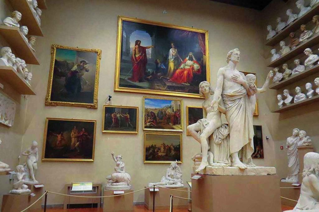 미켈란젤로의 다비드와 죄수들, 성 마태오 등의 조각상을 감상하세요.