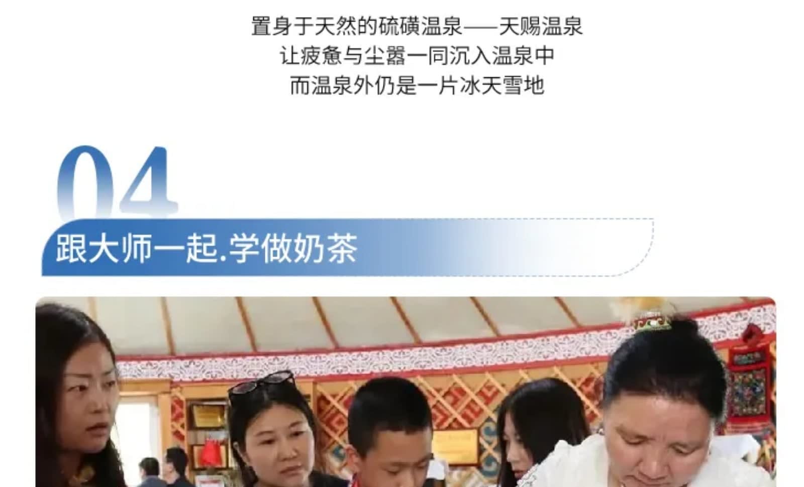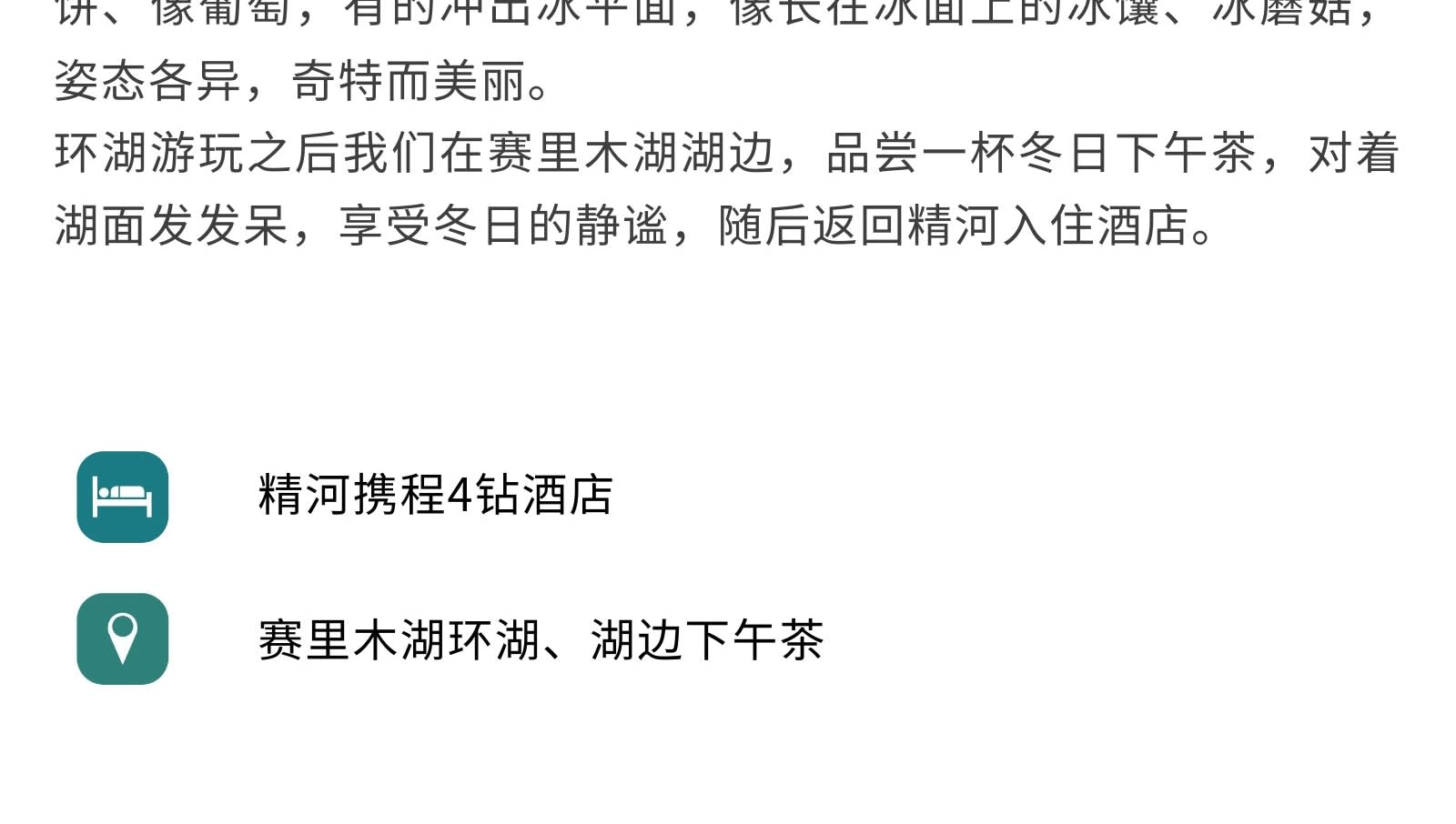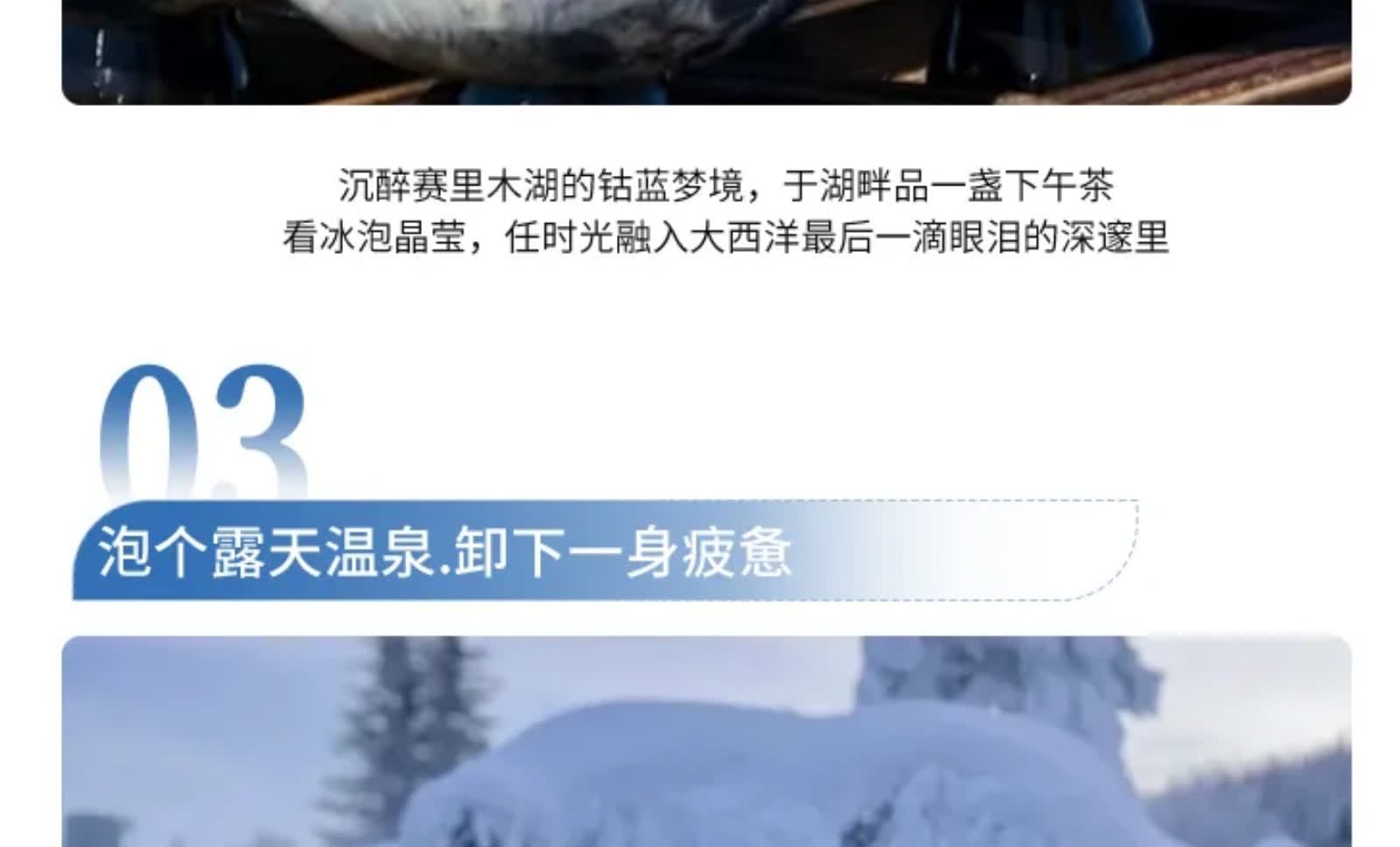 * 허무에서는 여행 사진 촬영을 준비하여 아름다운 모습을 남기고, 사이리무 호수에서는 여유로운 애프터눈 티를 즐기며 설원의 따뜻함을 느껴보세요.
