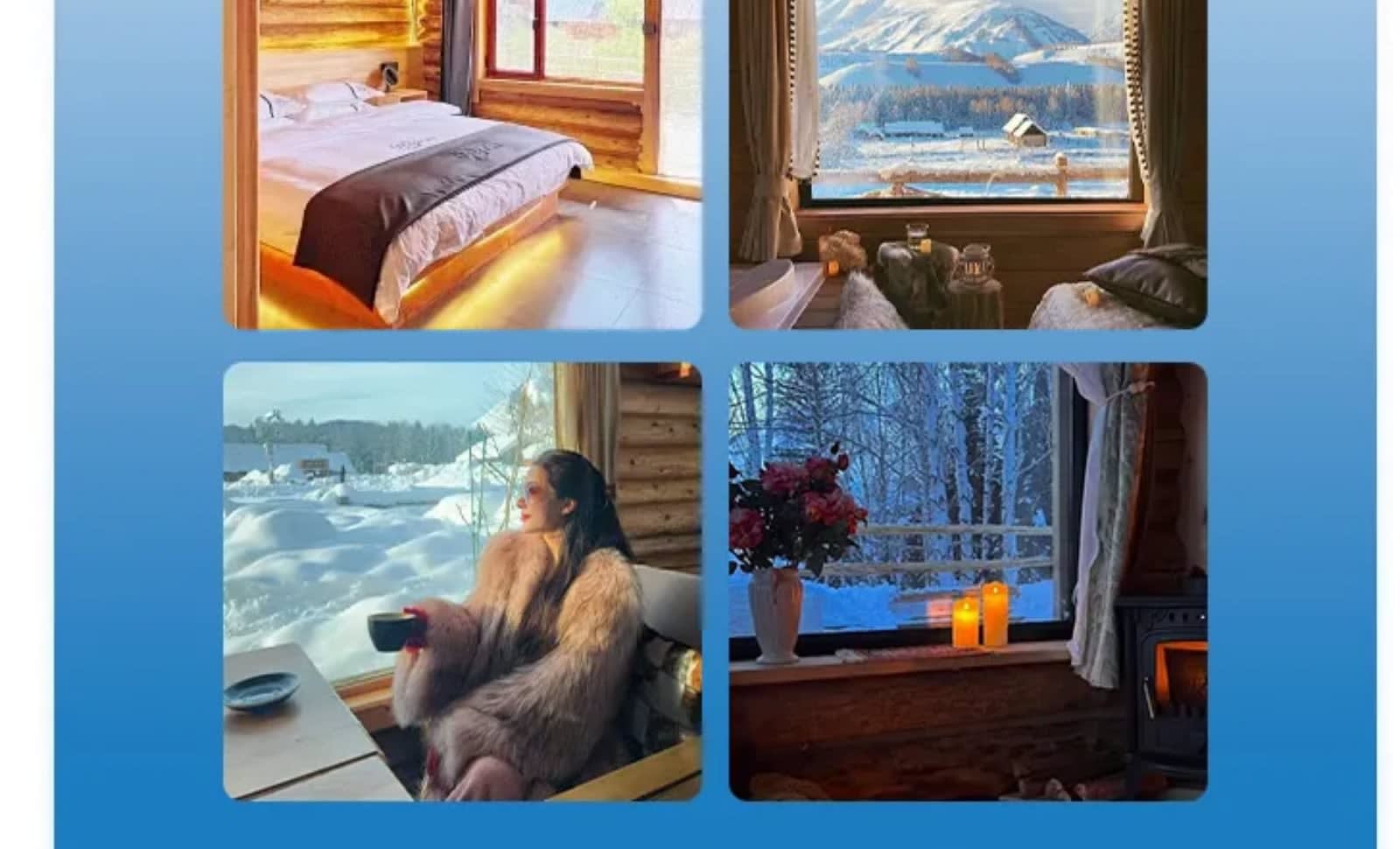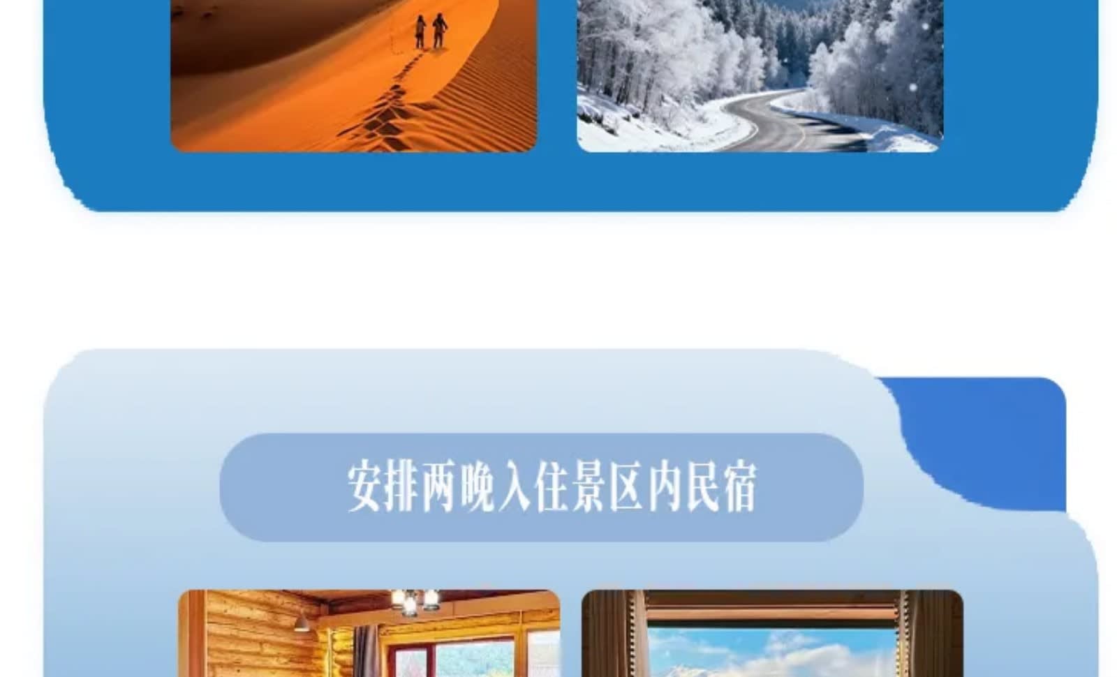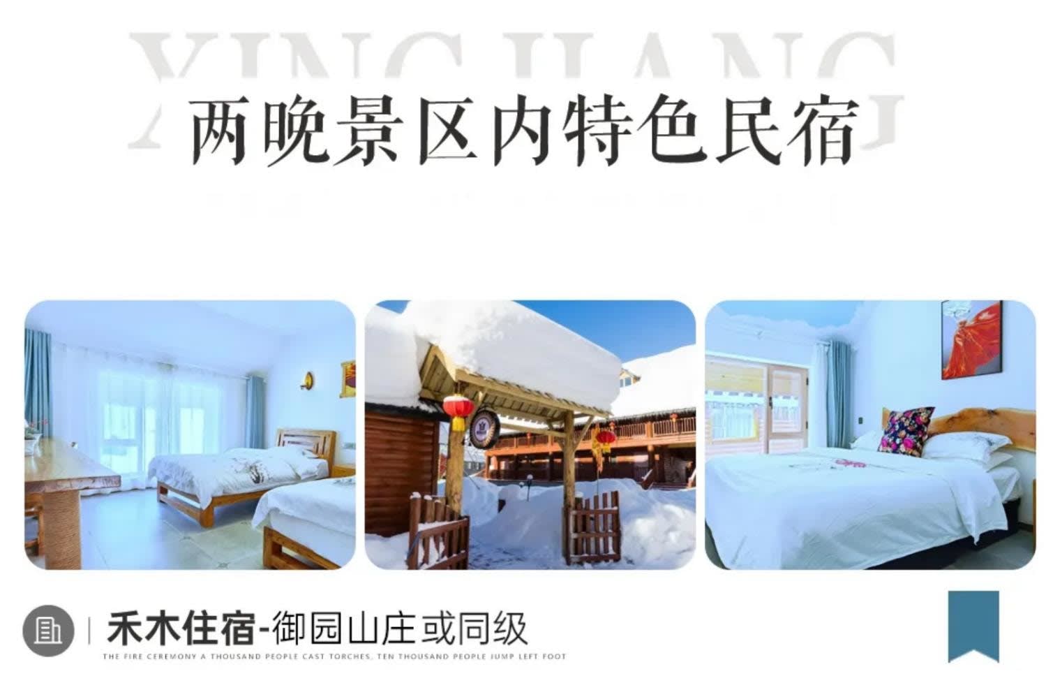 * 카나스+허무, 경치 좋은 지역 내 민박집에서 2박을 연달아 숙박할 수 있으며, 실내는 봄처럼 따뜻하고 창밖은 하얀 눈이 흩날립니다.