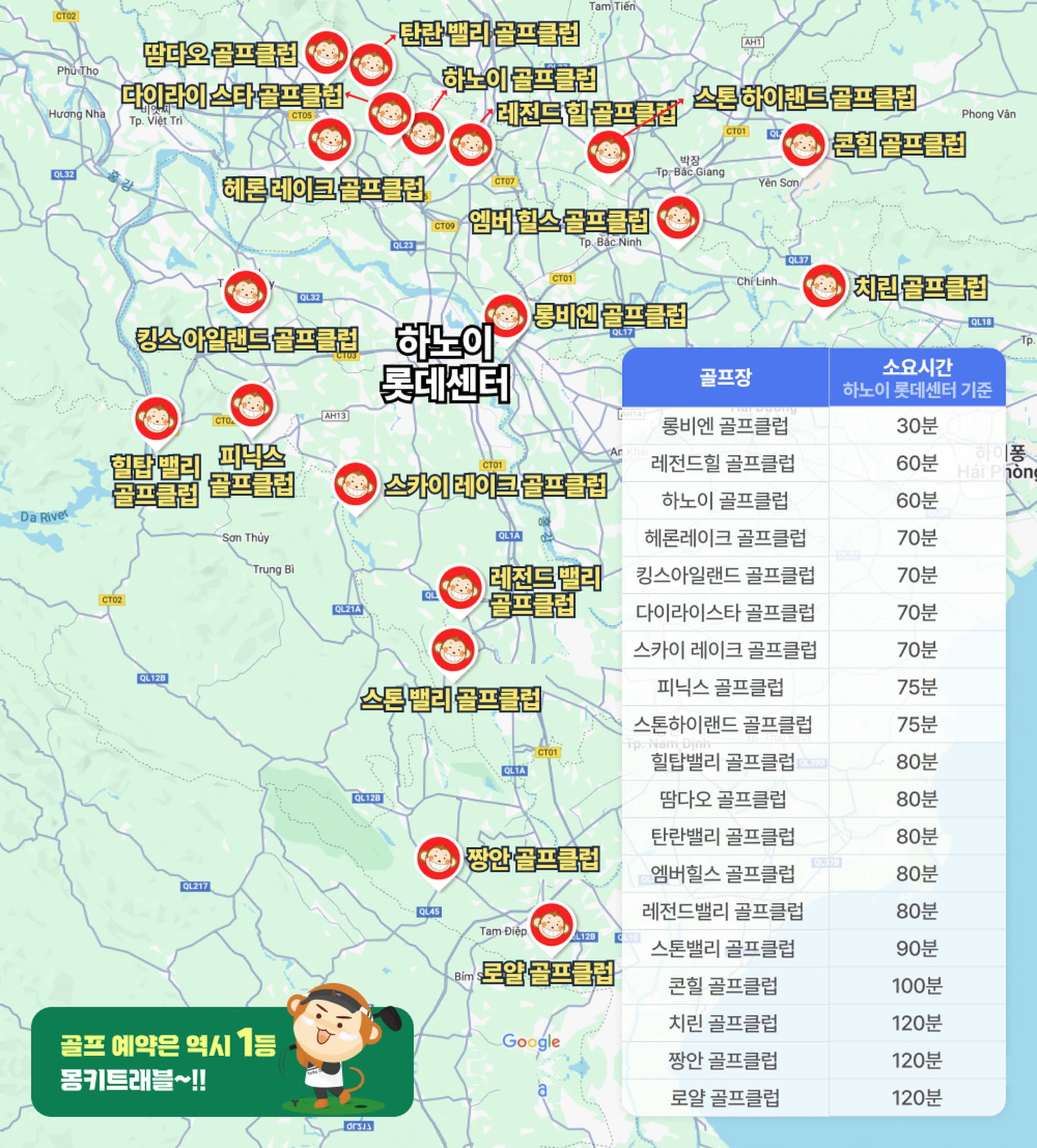 치린 스타 골프장은 하노이와 하롱베이 중간에 위치 하였으며 양 도시에 1시간 30분거리에 위치 하였습니다.