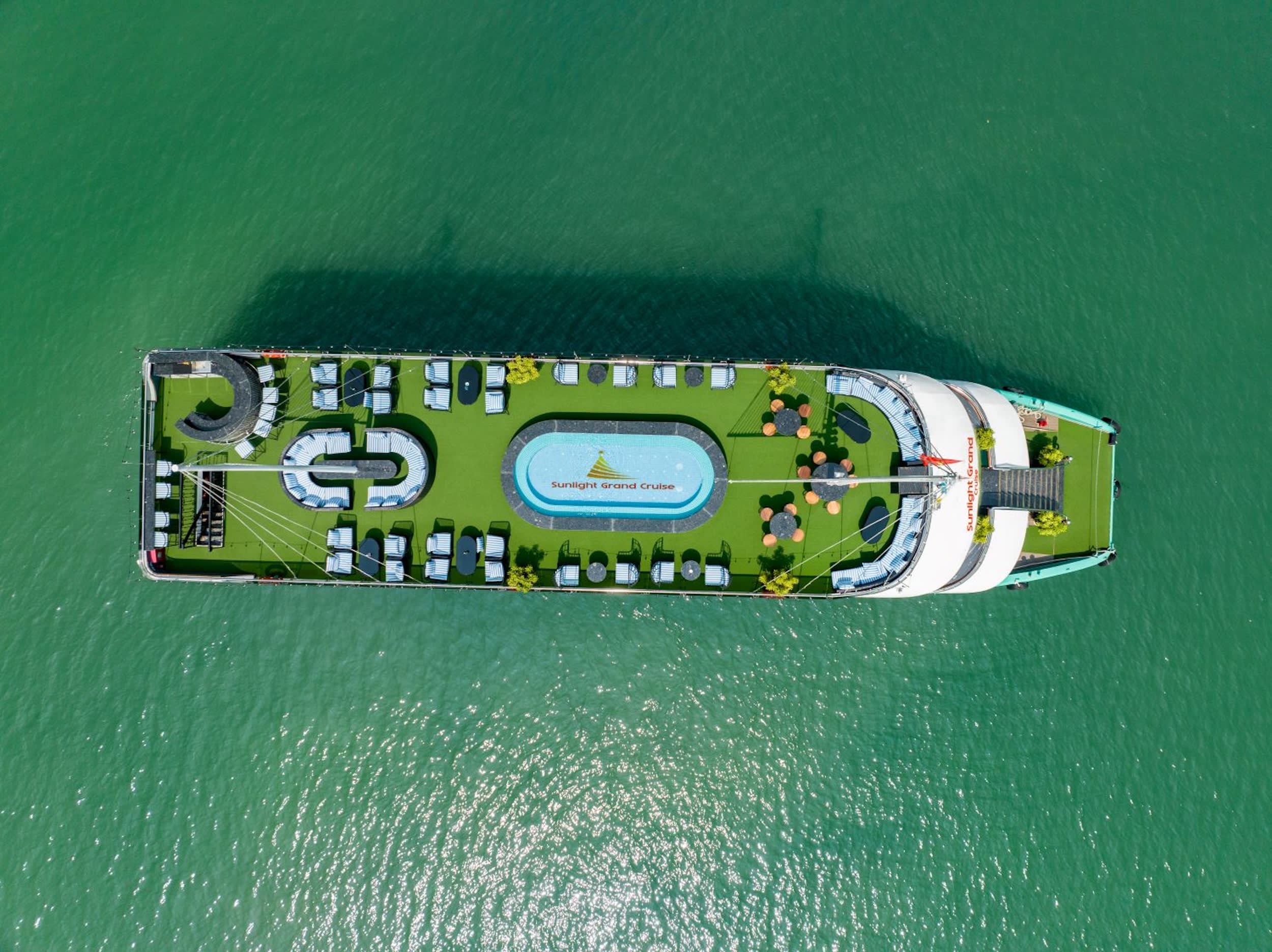 하롱베이 선라이트 그랜드 5성급 데이 크루즈에서 고급스러운 시설과 아름다운 경치를 만끽하며 잊지 못할 추억을 만들어보세요. 맛있는 점심 식사를 즐기고, 상징적인 석회암 지형을 탐험하며, 카약이나 수영과 같은 액티비티에 참여해 보세요. 세심한 서비스와 넓은 데크를 갖춘 최고의 방법으로 편안하고 스타일리시하게 만의 자연미를 경험해 보세요.