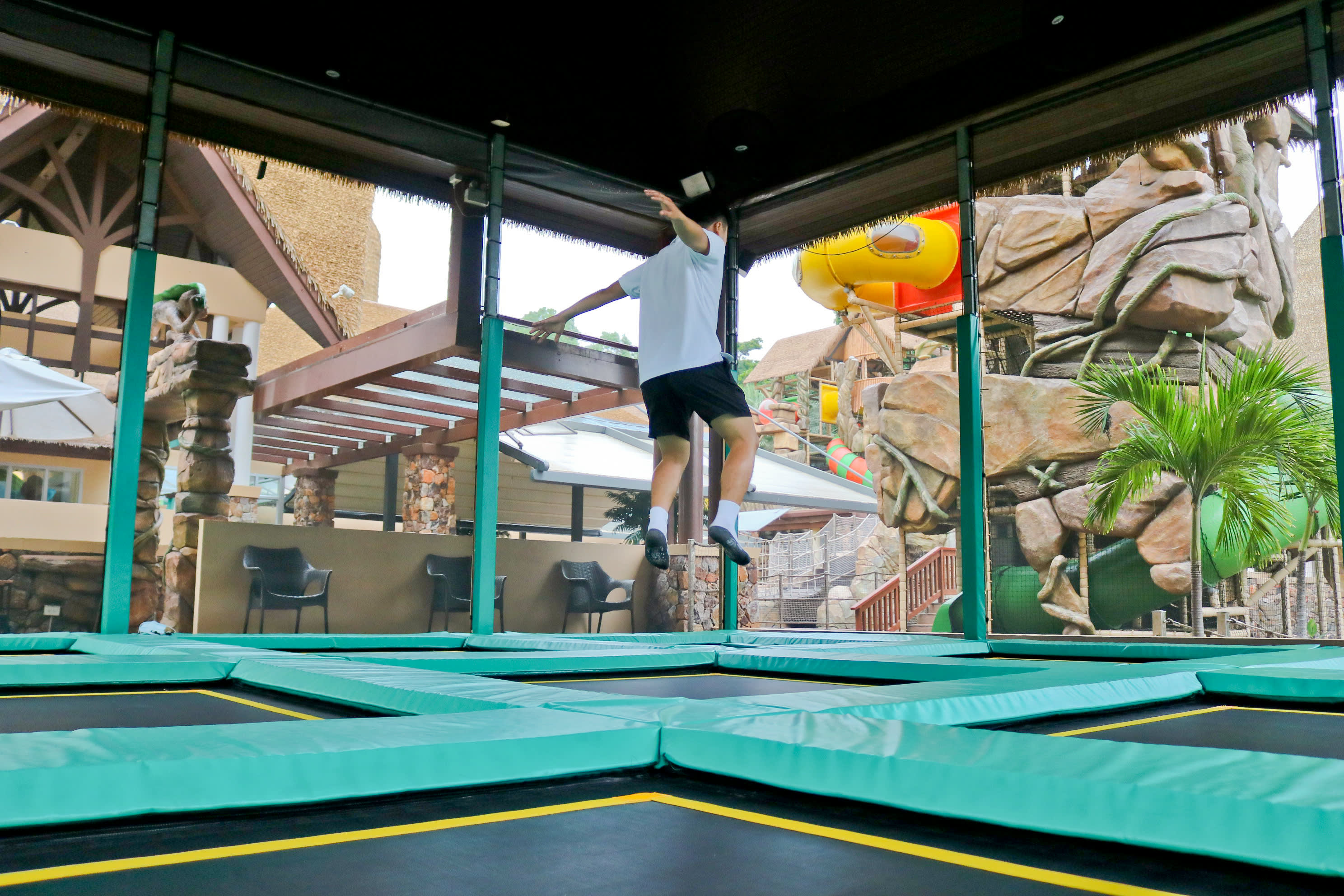 * 야외 놀이 공간에는 스릴 넘치는 빠른 슬라이드, 트램펄린 존, 뗏목 게임, 어드벤처 랜드가 내려다보이는 놀이터 타워, 어린 고고학자들이 공룡 뼈를 발굴할 수 있는 발굴장 등 3층 규모의 넓은 놀이터도 마련되어 있습니다.