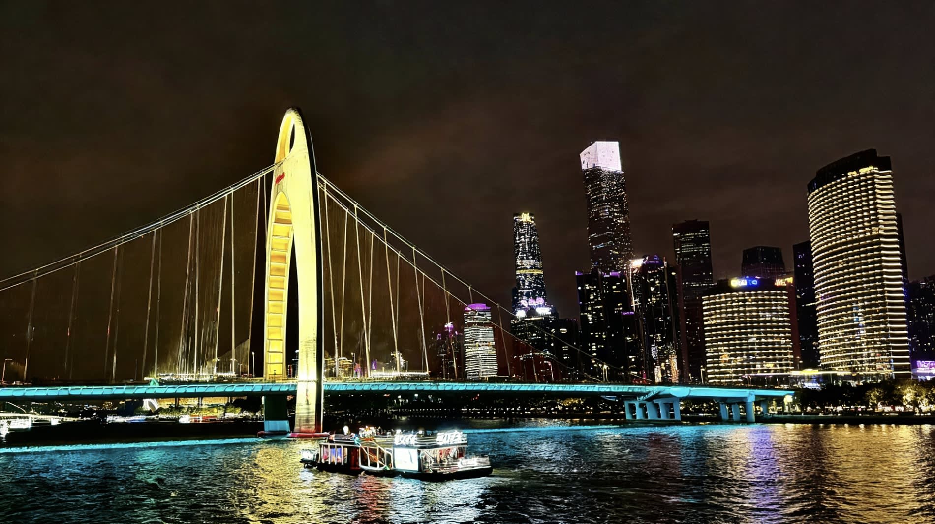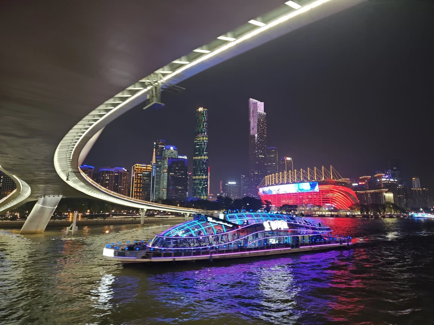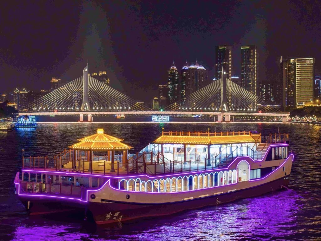 * 진시(광칭호) 중국풍 공연 유람선, 동쪽 노선은 광저우 타워, 주강 신시가지 등 현대 건축물을 연결합니다.