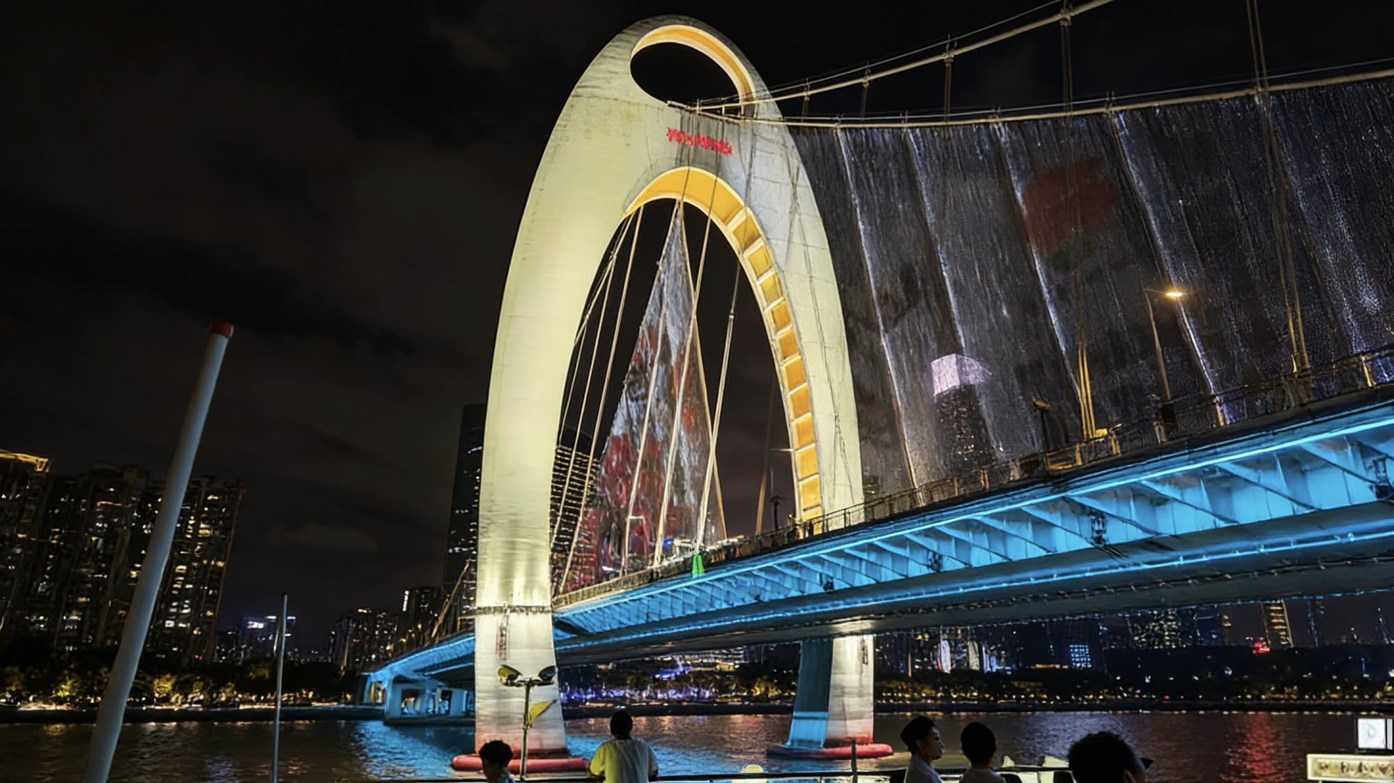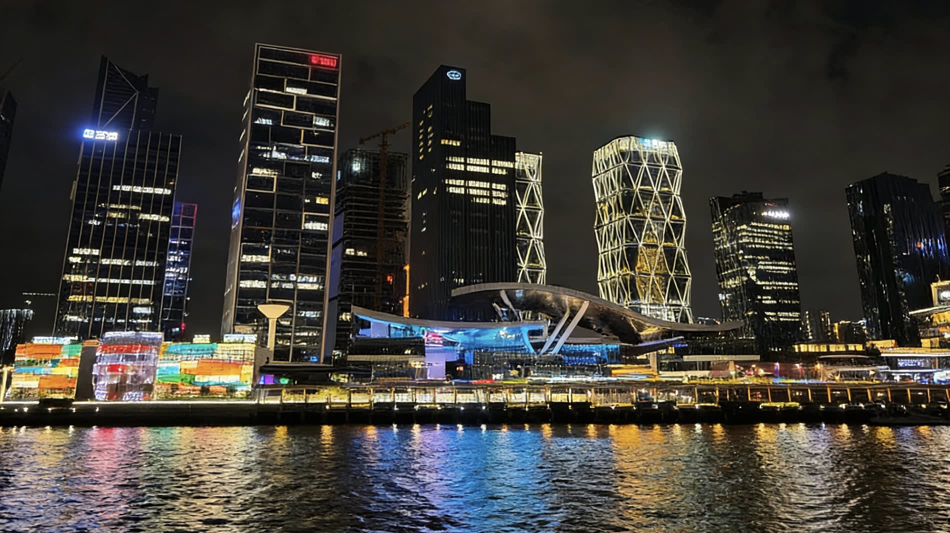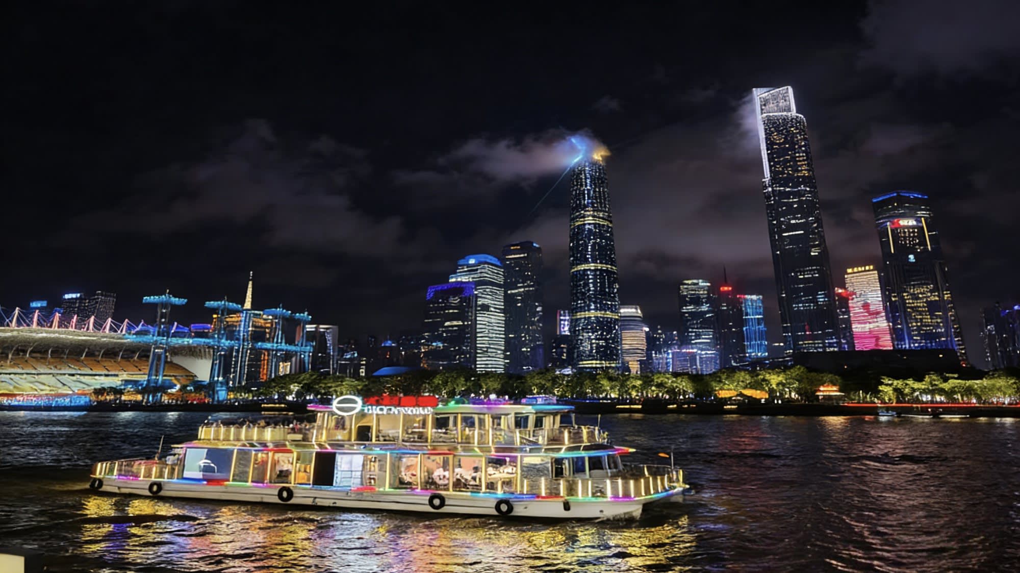 * 가상 이미지와 홀로그램 투영이 어우러져 광저우의 과거와 현재 변화를 주강 위에 펼쳐내어 강 경치와 기술이 몰입형 시각적 향연을 만들어냅니다.