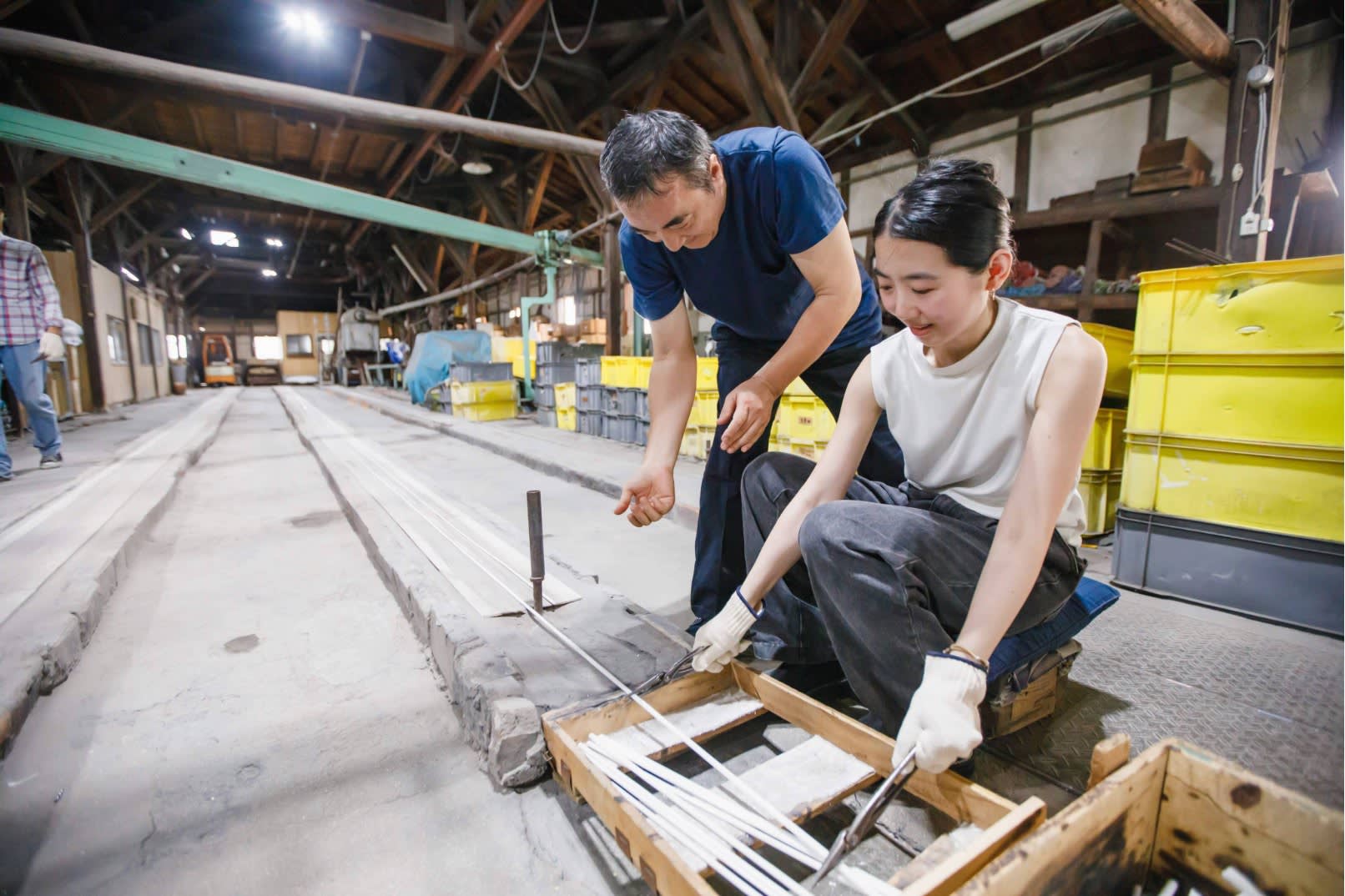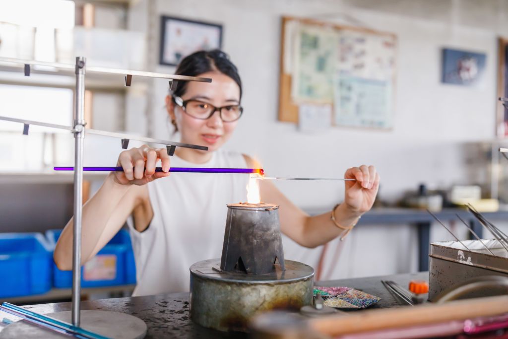 * 유서 깊은 유리 공방인 사타케 글라스에 방문하여 유리 막대와 구슬을 만드는 과정을 관찰해 보세요.