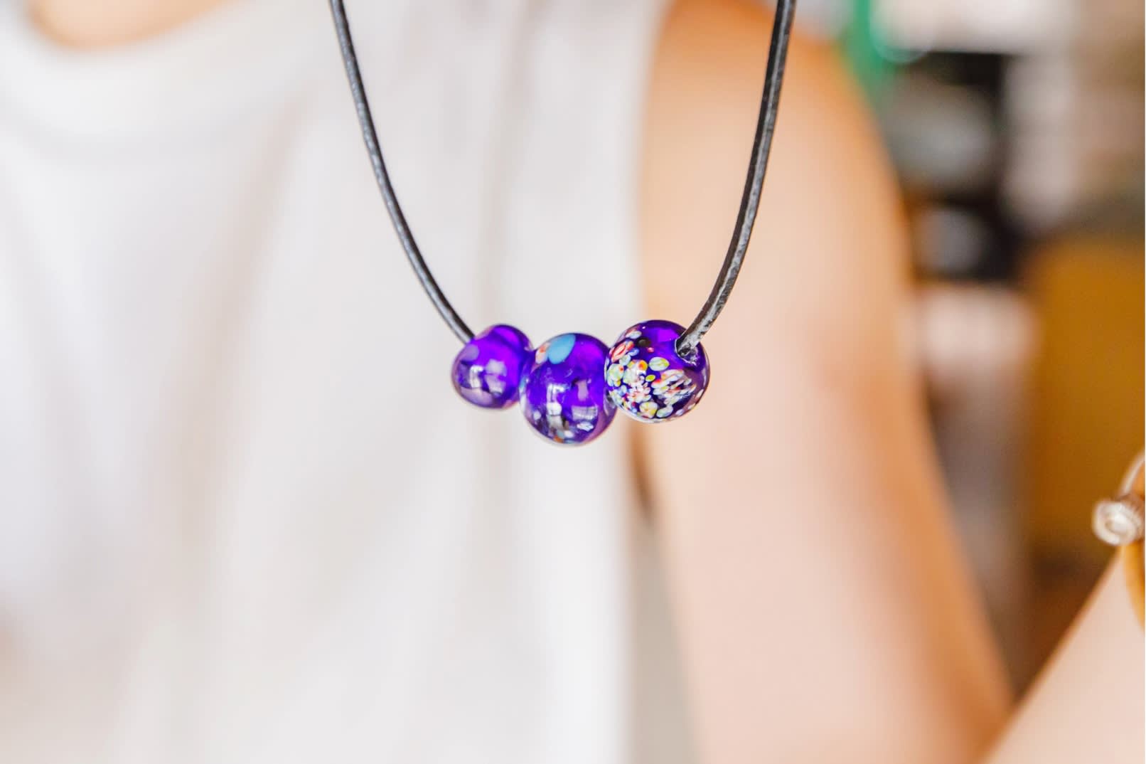 * 직접 만든 유리 구슬을 목걸이로 만들어 세상에 하나뿐인 기념품을 집으로 가져가세요.