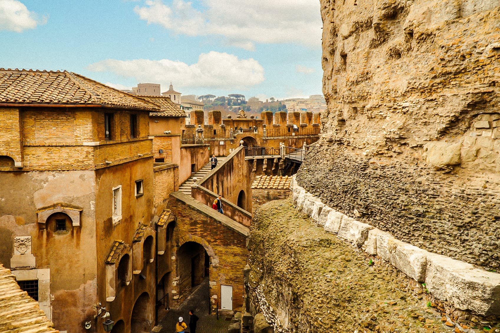 황제의 위엄, 교황의 권위, 죄수들의 고독을 모두 목격한 다면적인 장소, 산탄젤로 성의 유구한 역사를 탐험해보세요. 원래 하드리아누스 황제의 웅장한 영묘로 구상되었던 이곳은 강력한 요새이자 권위 있는 교황의 거주지로 발전했으며, 각 시대는 그 벽에 흔적을 남겼습니다. 로마 건축 기술의 증거인 웅장한 나선형 경사로를 올라 성의 가장 빛나는 보석인 옥상 테라스에서 절정을 이루세요. 테라스에 올라 로마의 상징적인 스카이라인의 탁 트인 전망과 함께 시간을 거슬러 올라가 보세요. 성 베드로 대성당의 돔부터 영원한 콜로세움까지, 각 전망은 영원한 도시의 풍부한 역사와 문화의 풍경을 엿볼 수 있는 기회를 제공합니다.