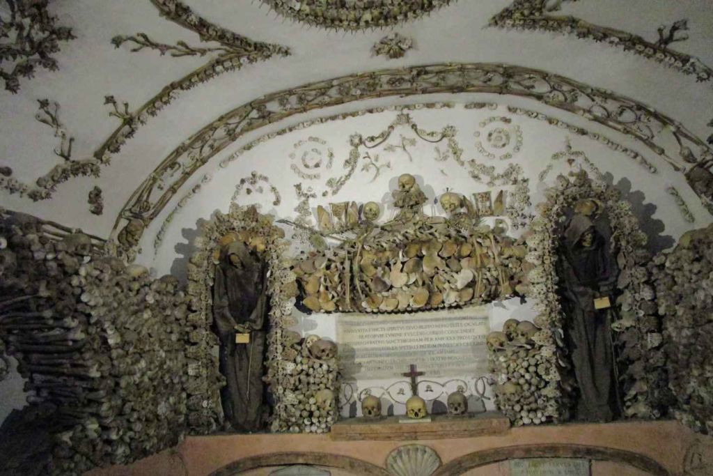 산타 마리아 델라 콘체치오네 데이 카푸치니 성당 아래에 위치한 이 지하 묘지는 카푸친 수도사들의 뼈로 장식된 작은 예배당으로 유명합니다. 이 뼈들은 충격을 주기 위한 것이 아니라 상징적인 디자인으로 배치되어 있습니다.