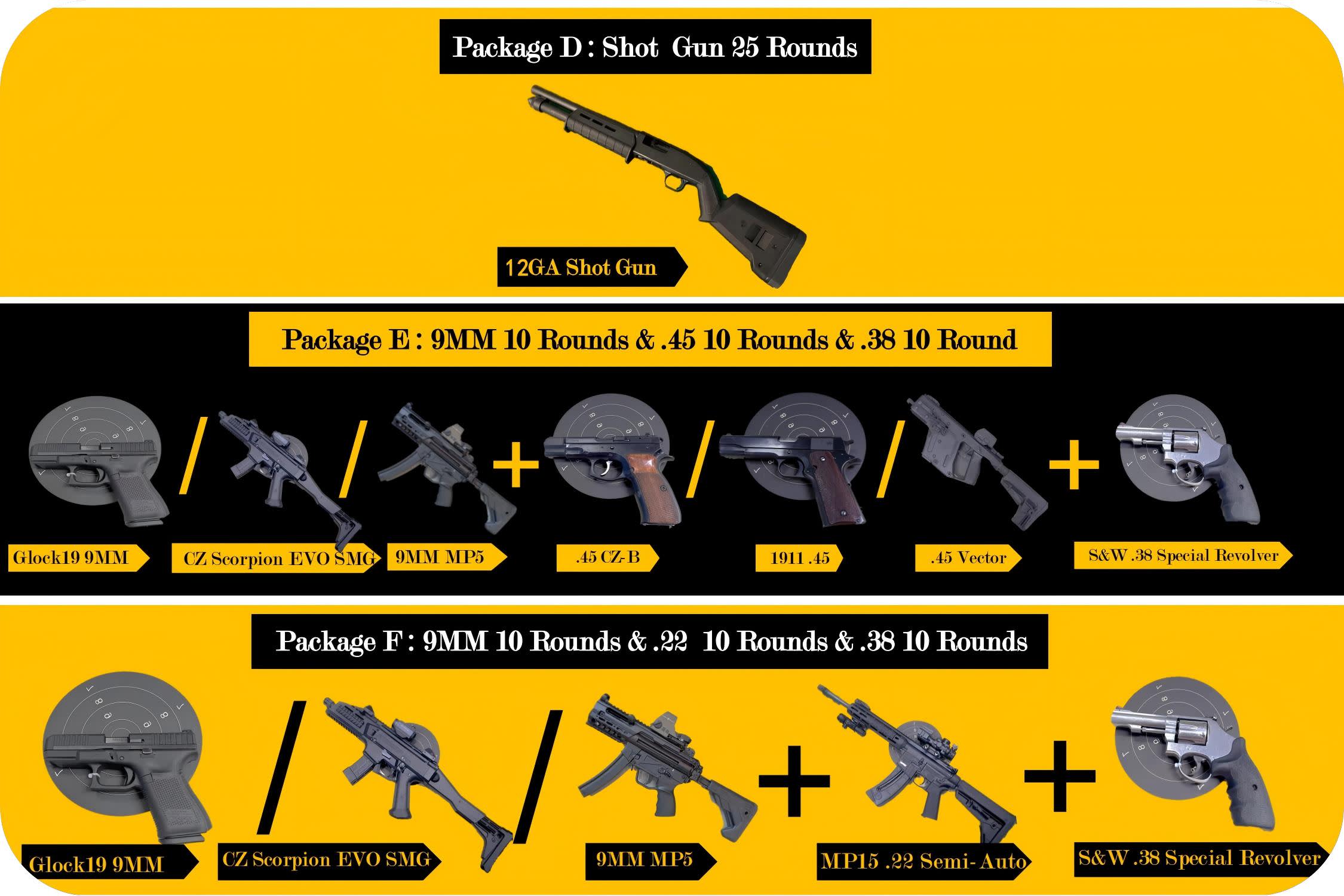 권총과 소총을 포함한 다양한 실제 총기를 선택하고 인증된 강사로부터 단계별 지침을 받으세요. 현지 전문가와 군 관계자들이 신뢰하는 시설에서 자세, 그립, 방아쇠 제어와 같은 필수 사격 기술을 배우게 됩니다.