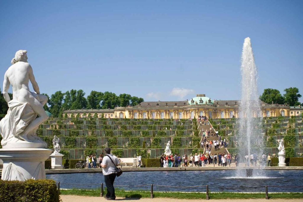 그런 다음 로마 건축에서 영감을 받아 프로이센의 승리를 기념하기 위해 지어진 우아한 포츠담 브란덴부르크문으로 이동합니다. 여기서 포츠담의 왕관의 보석, 즉 프리드리히 대왕이 가장 사랑했던 여름 별장인 잔소시 궁전으로 계속 이동합니다.