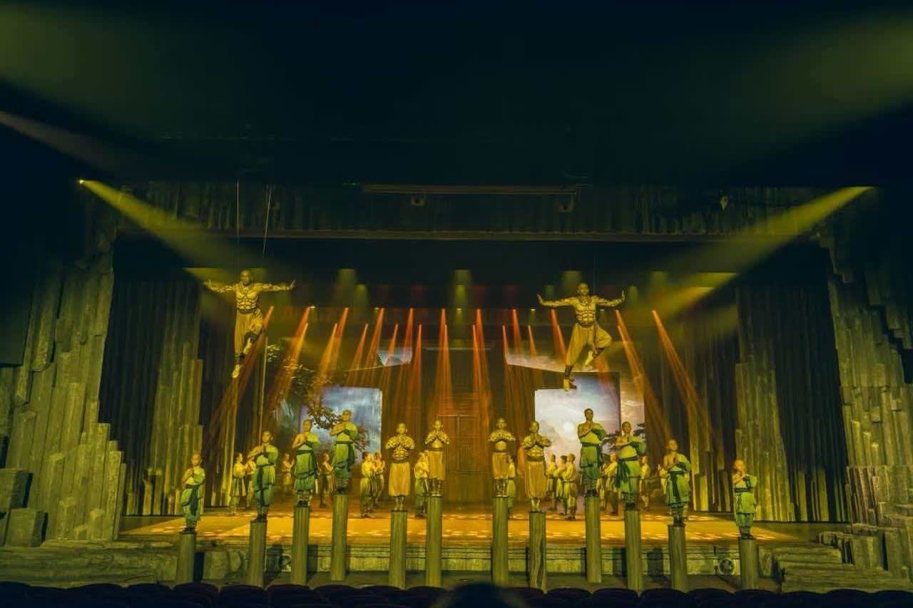 * 3D 홀로그램 프로젝션, 서라운드 입체 음향, 다이내믹 무대 장치 등 최첨단 기술을 활용하여 수묵 산수, 고찰의 구름 바다 등 동양 미학 장면을 무대 위로 옮겨왔습니다. 무술가가 몸을 날려 회전하는 동안 빛과 그림자가 초식에 따라 변화하며 180° 몰입형 관람 분위기를 조성하여 마치 천 년 소림사의 수행 비경에 있는 듯한 느낌을 줍니다.