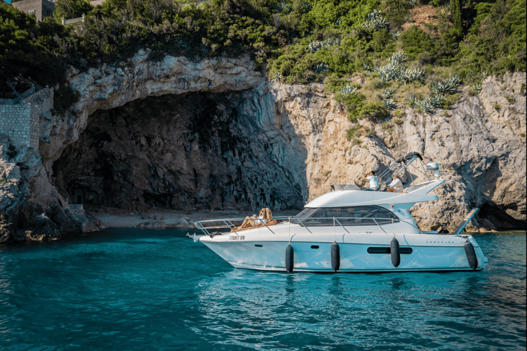 웅장한 프레스티지 36 플라이 요트를 타고 아드리아해와 두브로브니크의 아름다운 해안선을 탐험하세요. 선장과 승무원의 도움을 받아 해안선과 콜로세프, 로푸드, 시판의 엘라피테 섬을 탐험하세요.