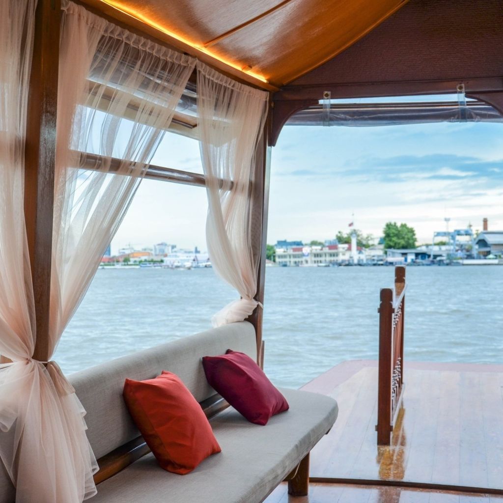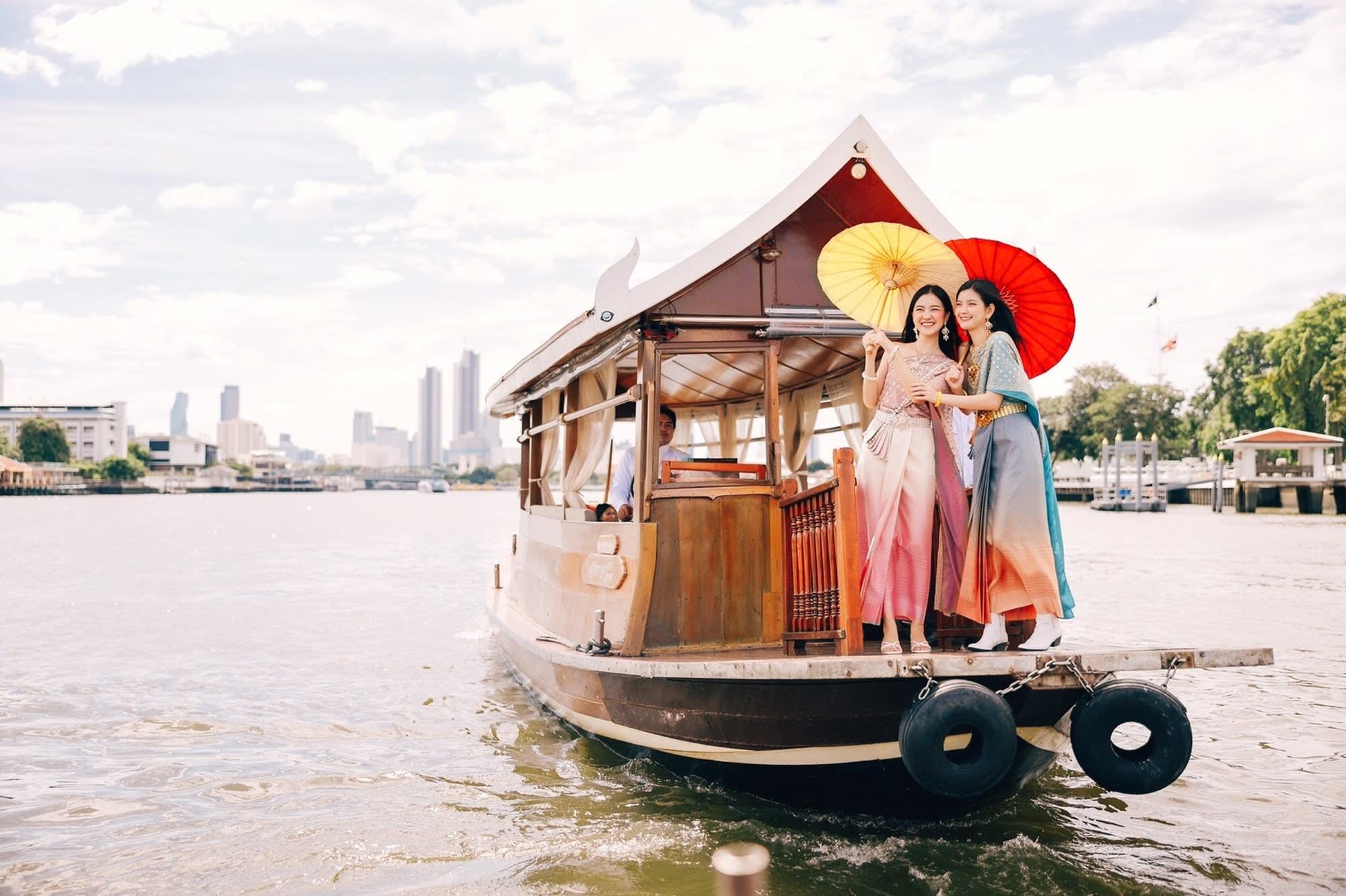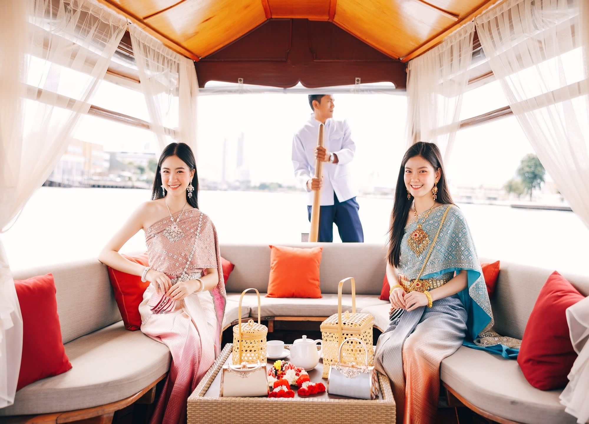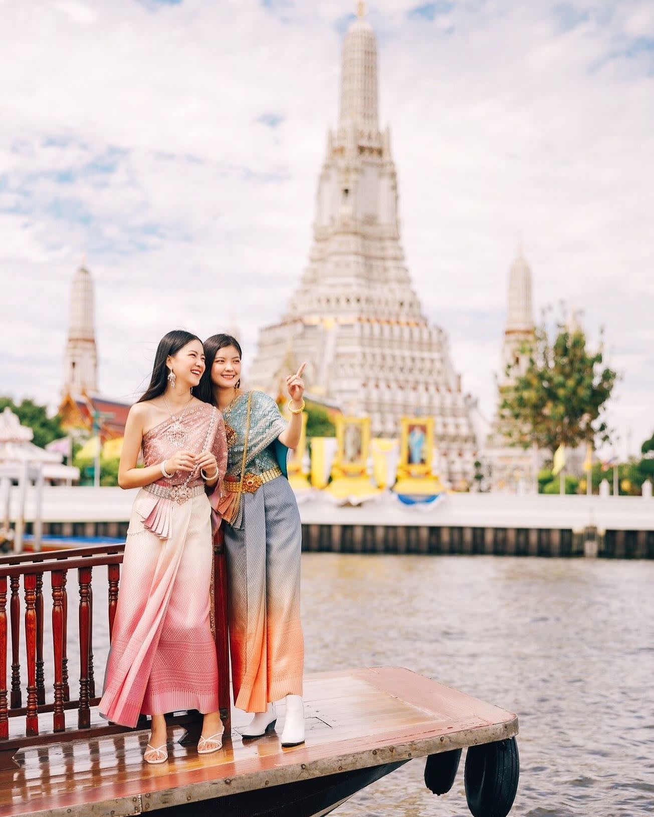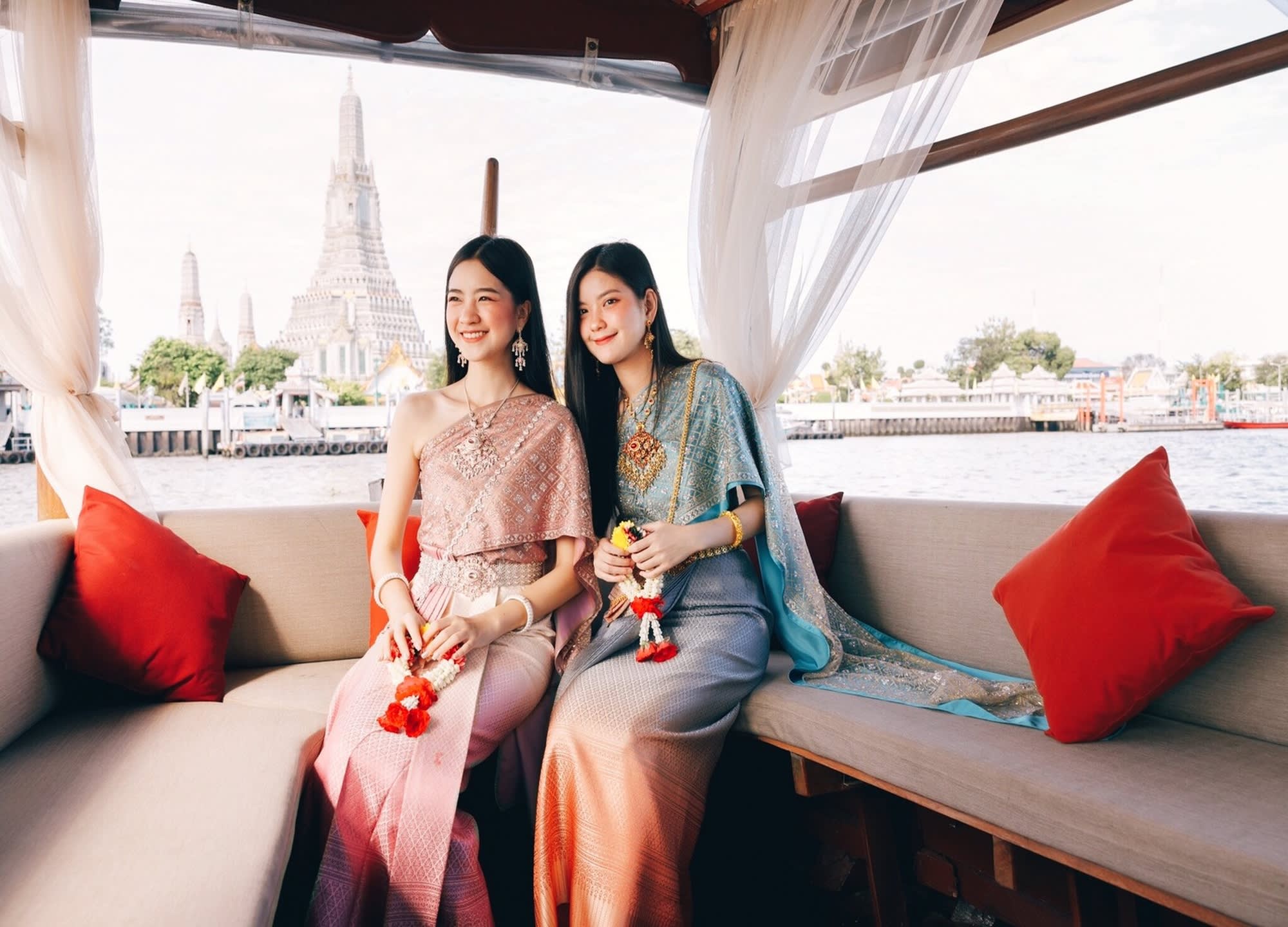 ▶ 상품소개 * 태국 전통 의상을 입고 살라 타이 보트 위에서 라마 8세 다리에서 왓아룬까지 짜오프라야 강변의 풍경을 즐기고 인생샷도 남겨보세요 - 태국 전통 의상을 입고 보트 탑승하는 보트+의상 패키지 상품입니다.