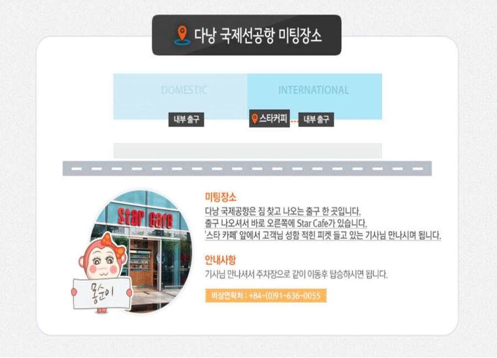 ▶ 체크인 방법 - 입국 패스트트랙 미팅장소 다낭국제공항 입국장에서 에스컬레이터 타고 내려오셔서 바로 앞에 고객님 성함적힌 피켓들고있는 직원 만나시면됩니다.