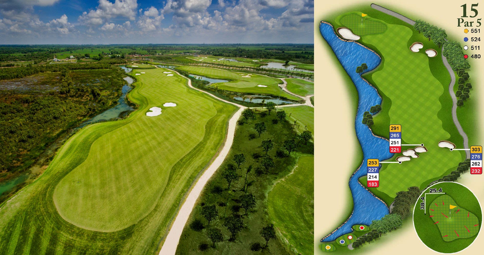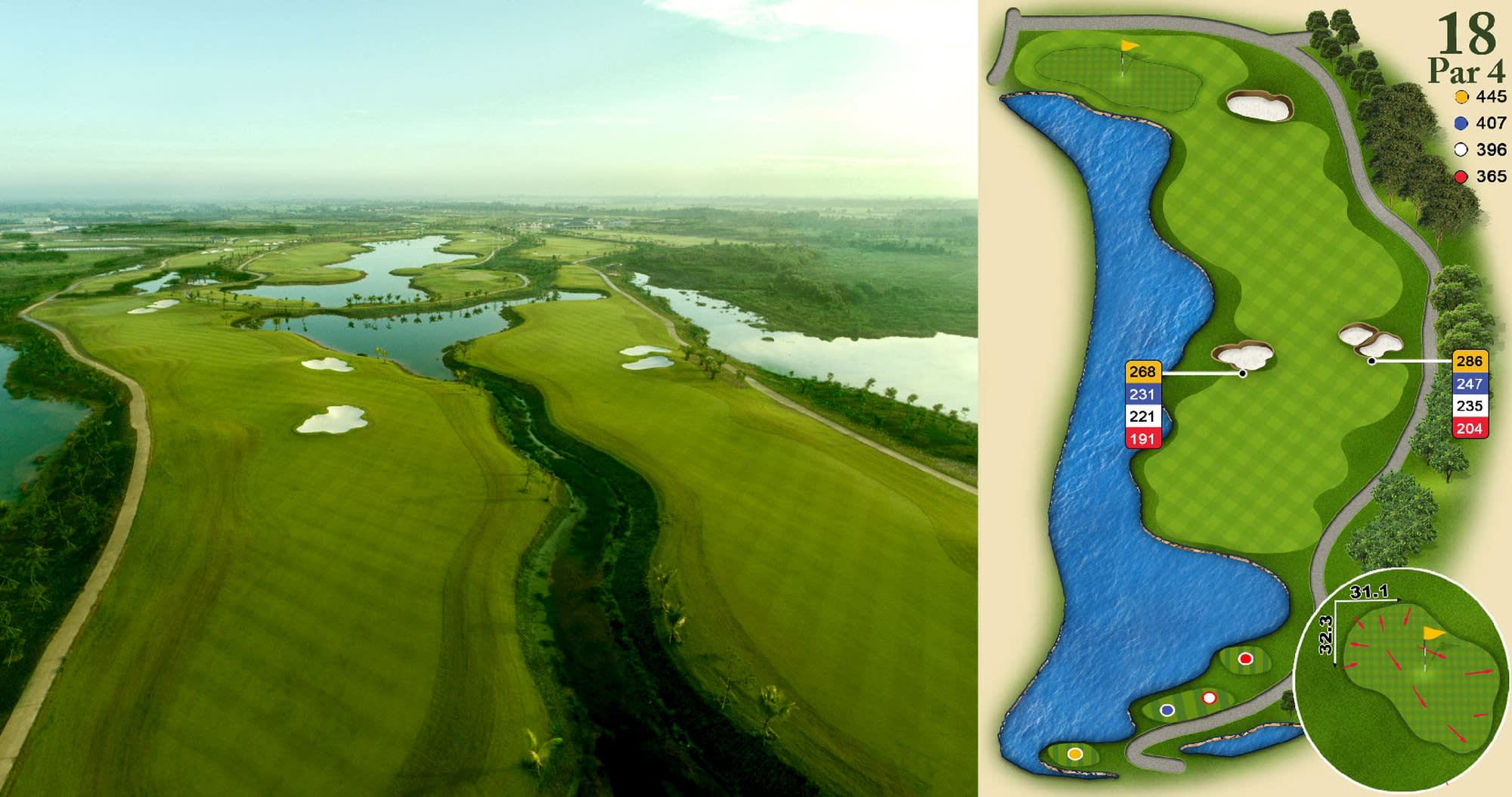 Thomson Perrett의 스타일로 구성된 총 7,100야드가 넘는 코스에는 각 코스마다 눈에 띄는 그림 같은 호수, 기복이 심한 물결 모양의 교묘하게 배치된 벙커가 있는 페어웨이 등은 웨스트 레이크 골프장만의 특징을 드러냅니다.