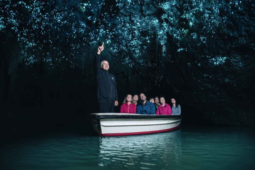 마법 같은 보트 타기를 통해 와이토모 반딧불 동굴을 탐험하세요.