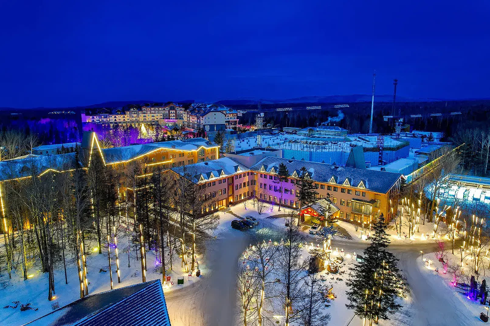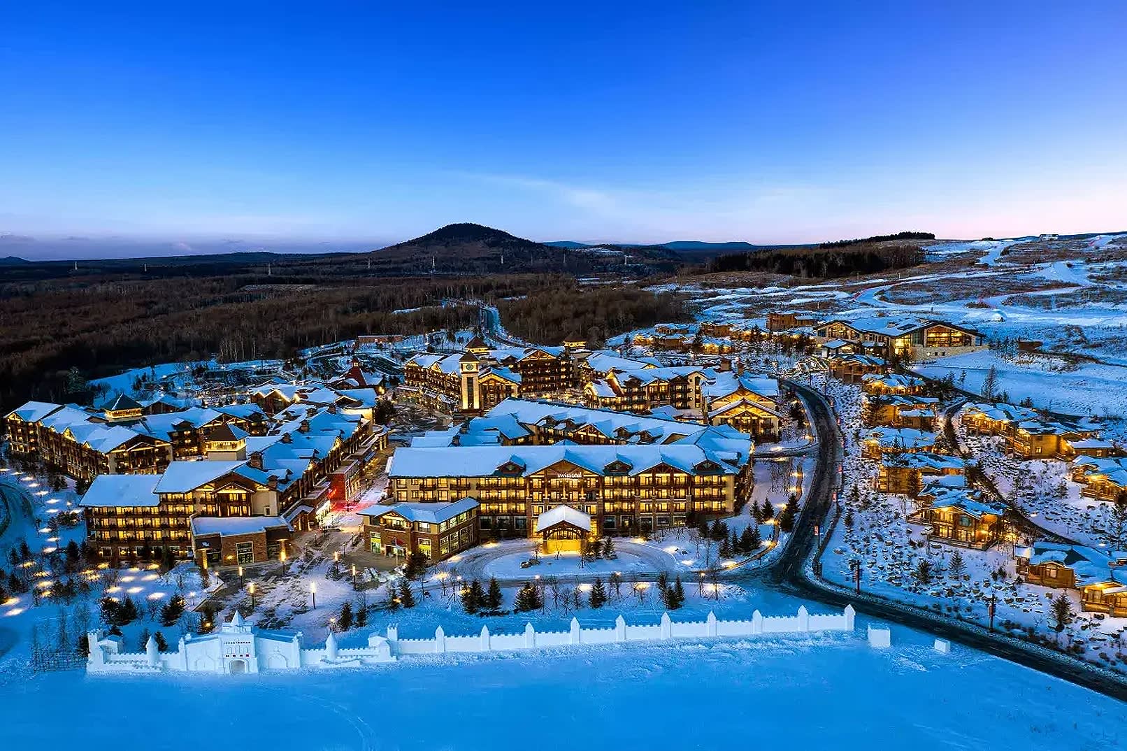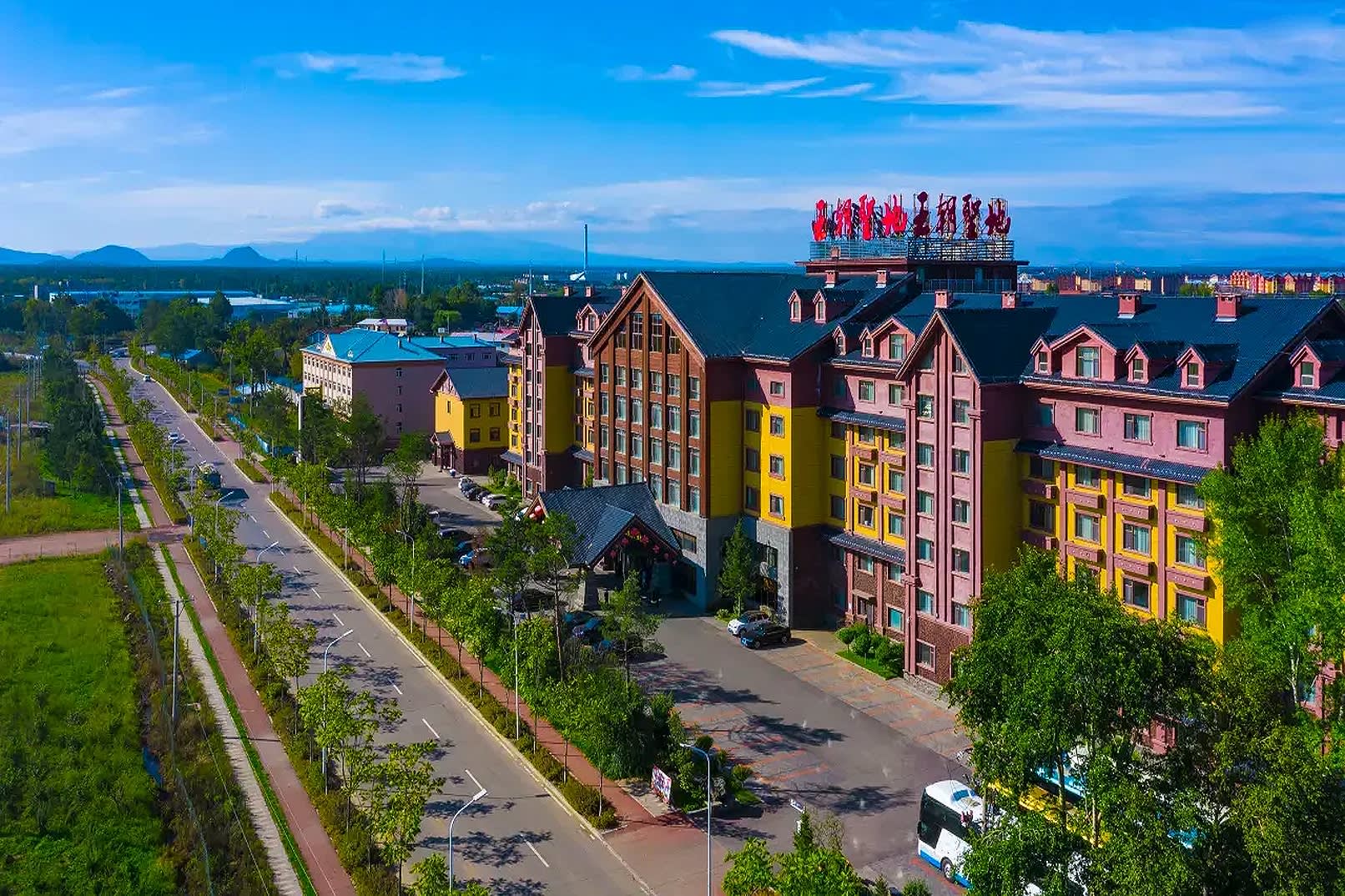 * 온천 요양을 중심으로 총 면적이 60,000㎡에 달하는 순수한 유럽 스타일의 건물로, 사방이 소나무 숲으로 둘러싸여 있고 새소리와 꽃향기가 가득합니다.