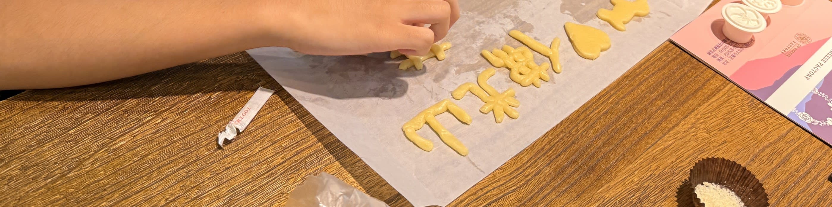 ▶녹두 앙금 과자 DIY + 치즈 쿠키 DIY - 이용요건 * 본 상품은 이용 가능 연령이 제한되어 있지 않습니다. - 추가정보 * 금형 보증금 TWD200 (금형은 반환해야 함) - 규정 및 제한사항 * 식단 관련 요청사항에 관해 편의를 제공할 수 있습니다. (ex. 알레르기, 글루텐 민감증, 채식 식단 등) - 운영시간 * 베이커리|월요일~일요일: 10:00 AM -17:00 PM (수, 목요일은 식사 제공 없음)