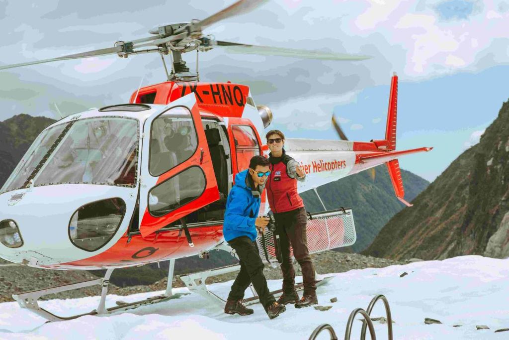 폭스 빙하 상공에서 특별한 경치 비행을 즐겨보세요.