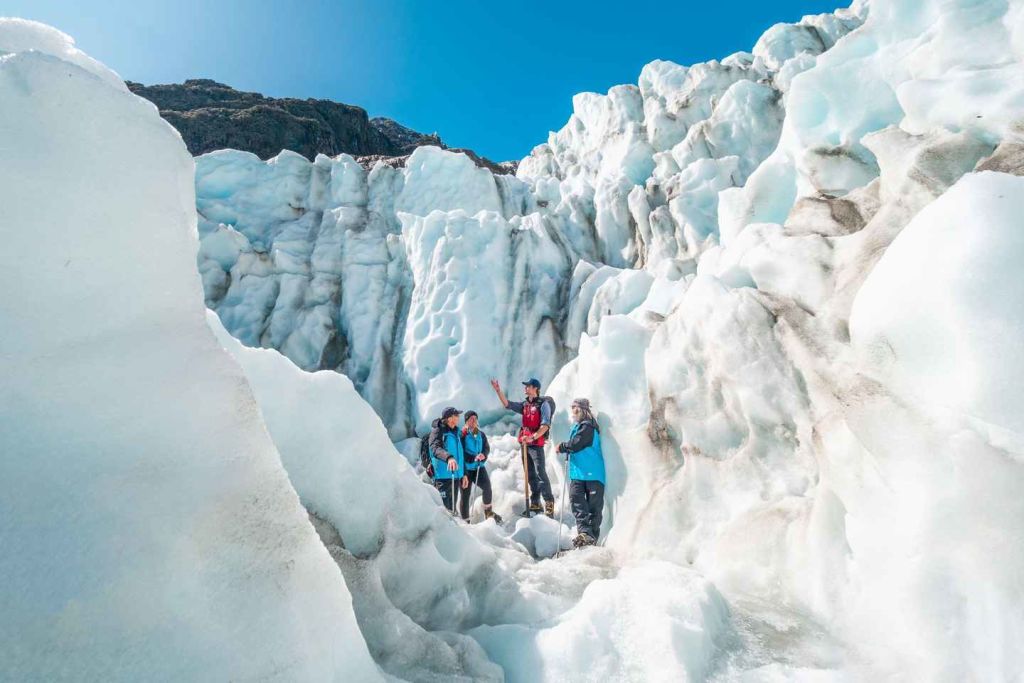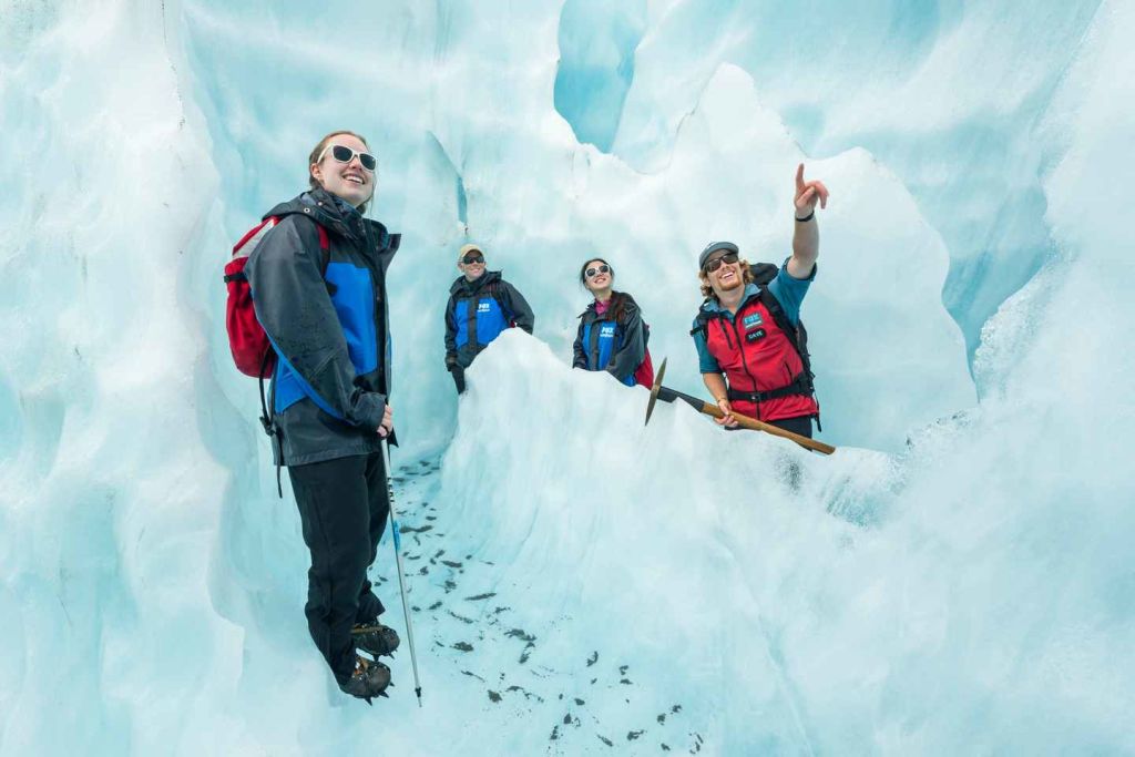폭스 빙하에서 스릴 넘치는 하이킹과 헬리콥터 체험을 즐겨보세요. 장엄한 얼음 동굴, 빙하 폭포, 숨겨진 빅토리아 빙하에서 녹은 강인 빅토리아 폭포 등 상공에서 바라보는 극적인 풍경을 감상해 보세요.