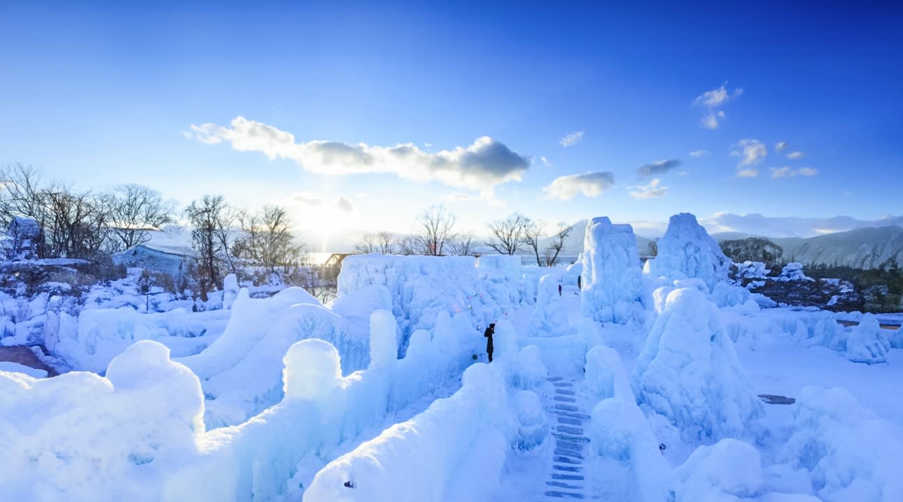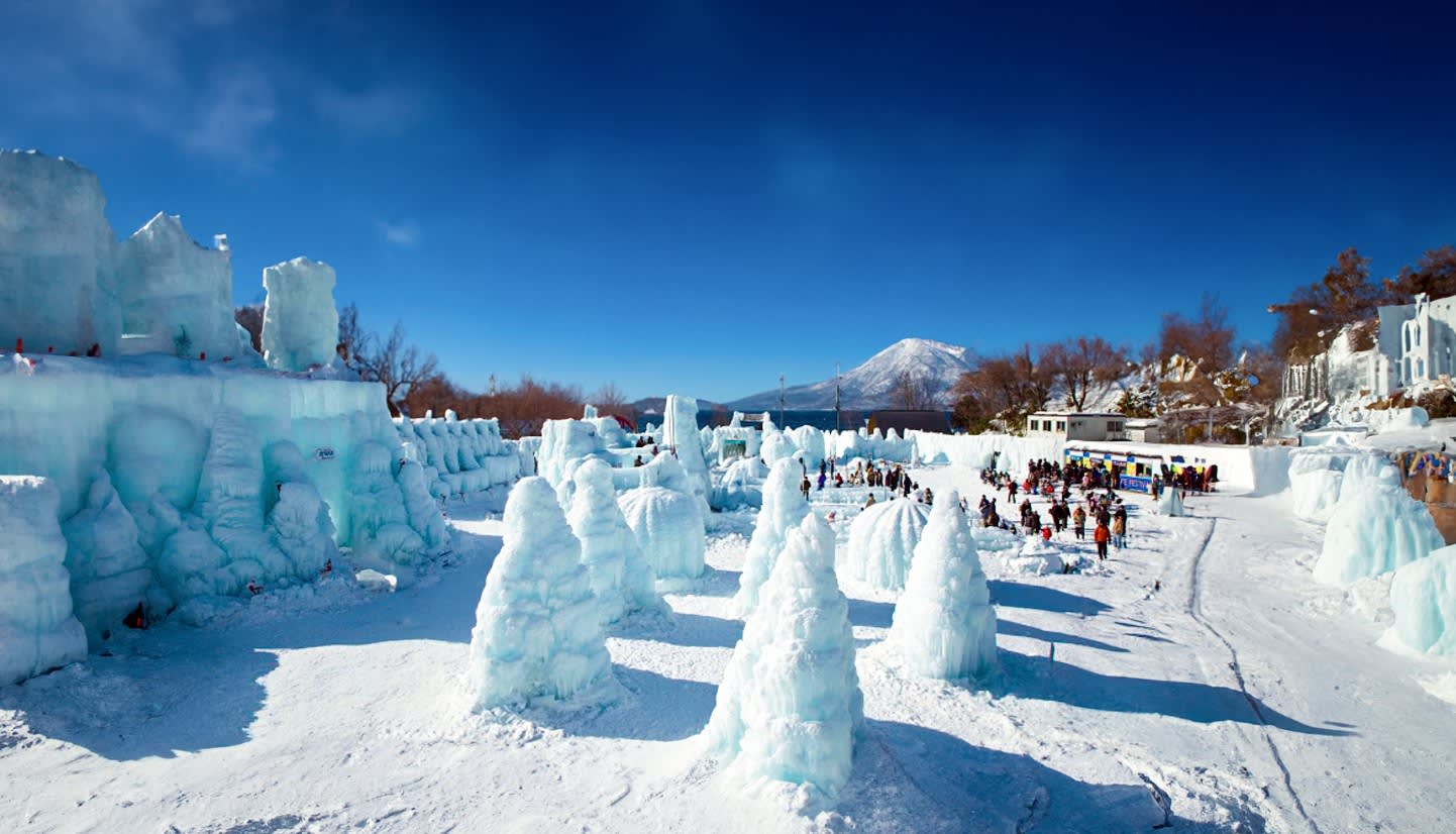 【치토세 시코쓰 호수 빙도 축제】 매년 1월 하순부터 2월 중순까지 시코쓰 호수에서는 '치토세 시코쓰 호수 빙도 축제(支笏湖氷濤まつり)'라는 성대한 행사가 열리며, 투명하고 깨끗한 시코쓰 호수 물로 만든 얼음 조각 예술품을 전시합니다. 이 얼음 조각 작품은 고압 물줄기로 시코쓰 호수 물을 뿌려 얼려 만든 것입니다. 낮에는 이 얼음 조각이 수정처럼 맑은 외관을 띠며 햇빛에 비쳐 자연스러운 푸른색을 발산하는데, 현지 주민들은 이를 '시코쓰 호수 블루'라고 부릅니다.