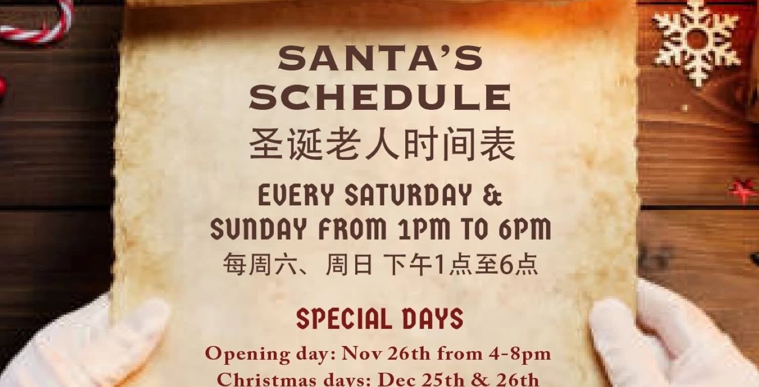 * 주말에는 산타클로스가 등장하여 즐거운 상호작용과 기억에 남을 사진 촬영을 할 수 있습니다.