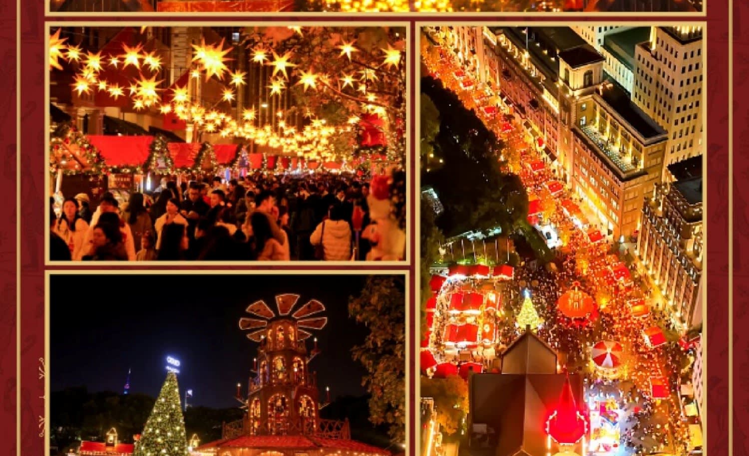 * 상하이에서 가장 사랑받는 연말연시 전통이 아늑하고 낭만적이며 축제 분위기로 가득하게 돌아왔습니다! 반짝이는 조명으로 가득한 번드의 독일 겨울 동화 속으로 들어가 보세요. 45개 이상의 나무 가판대에서 정통 음식, 음료, 수제 선물을 만나보세요. 친구 및 가족과 함께 축하하기에 완벽한 장소입니다!
