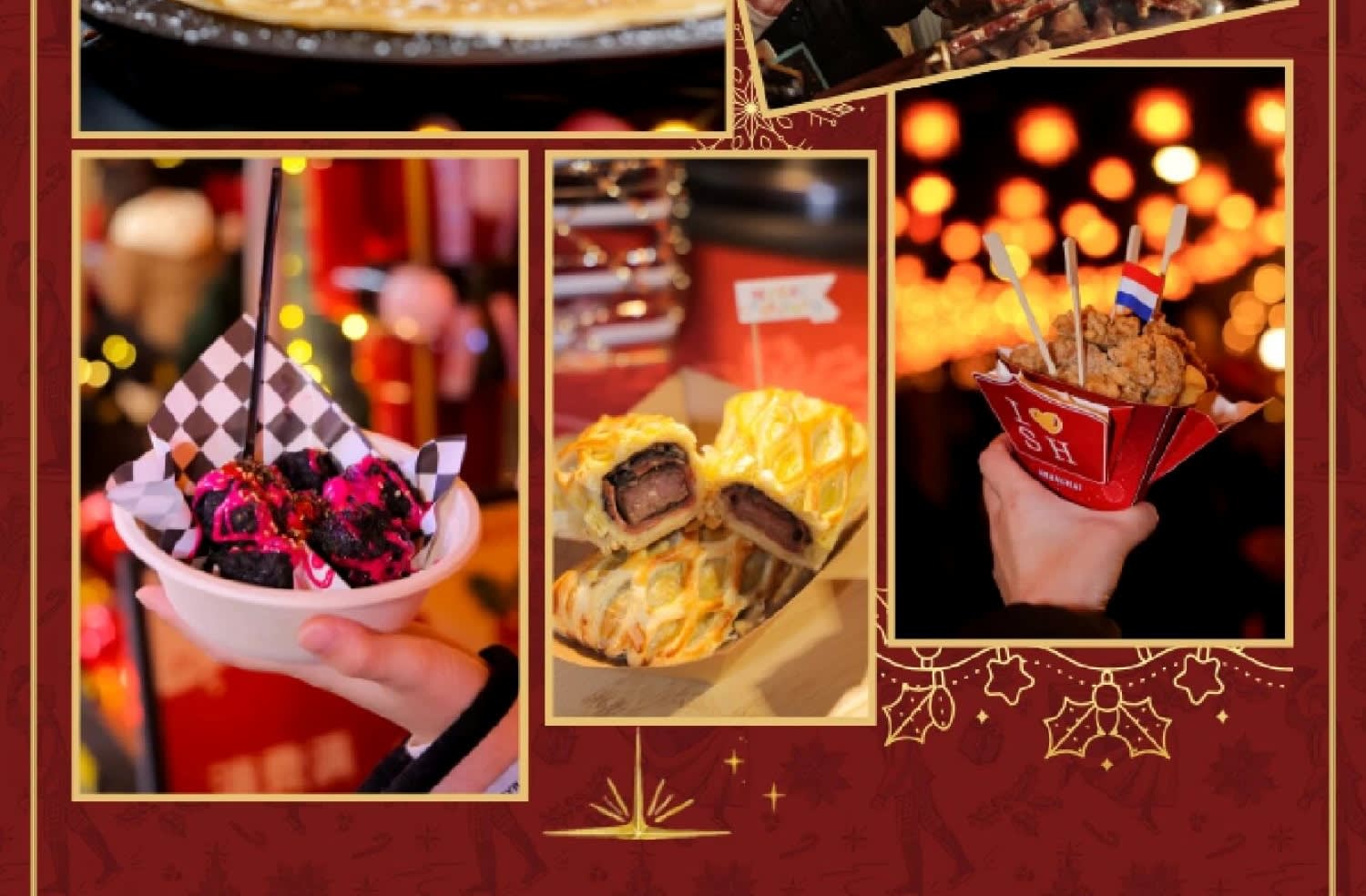 * 11월 26일부터 12월 28일까지 매주 주말, 산타와 그의 요정들이 시장에 나와 크리스마스 마법을 전파할 것입니다! 위시리스트를 가져와 축제 사진으로 순간을 포착하세요.