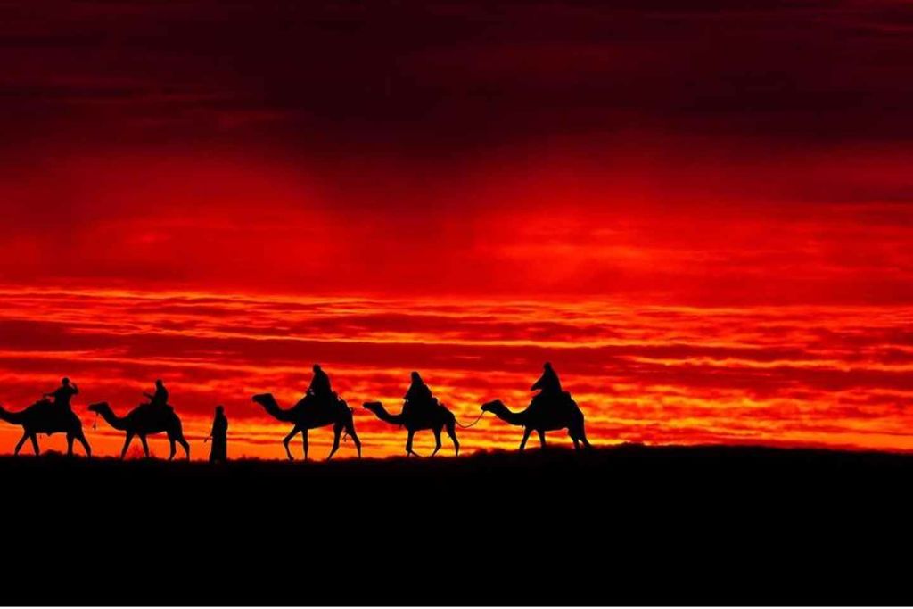 옵션: 일몰을 바라보며 낙타 타기, 사막의 황금빛 고요함을 느낄 수 있는 영원한 경험.