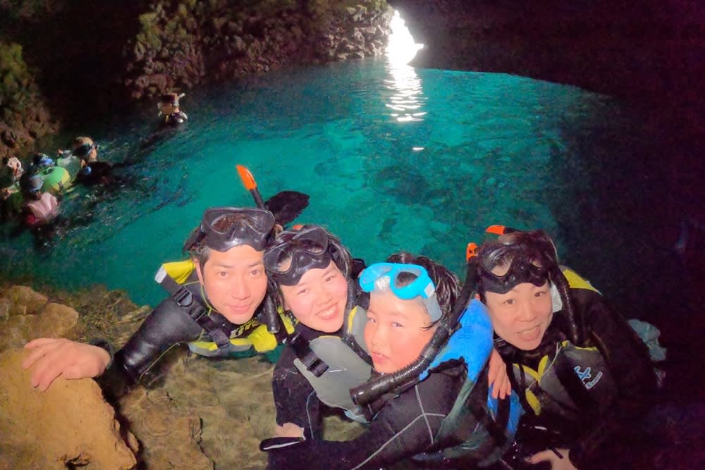푸른 동굴과 맑은 바다, 다채로운 열대어와 산호초를 한 번에 즐길 수 있는 플랜♪ 자연의 빛으로 라이트업된 푸르게 빛나는 동굴과 산호초, 열대어의 바다는 오키나와에서의 최고의 추억이 될 것입니다.