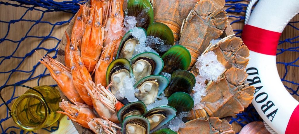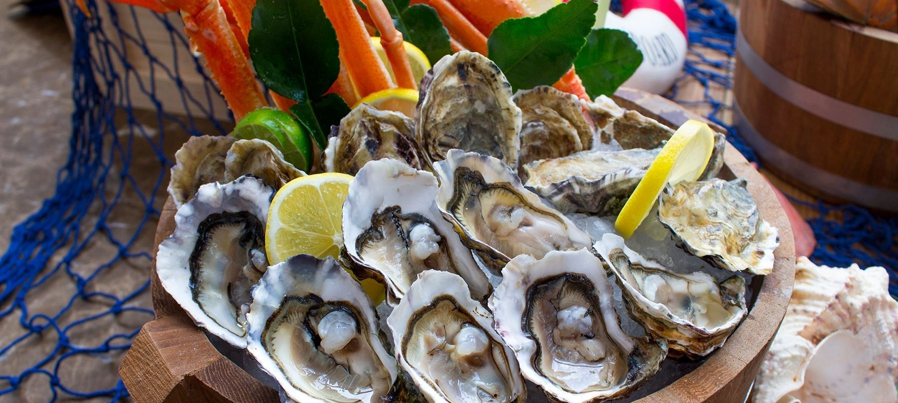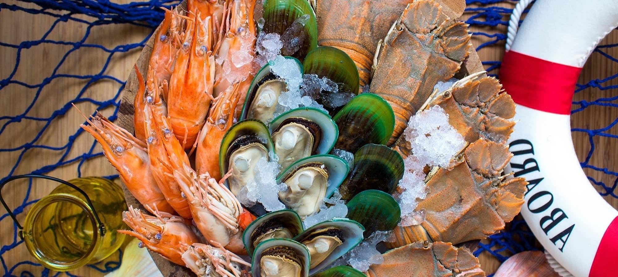 - 신선한 굴 / 아일랜드 굴 / 참새우 / 뉴질랜드 홍합 / 바다 달팽이 / 바위가재 / 꽃게 / 바지락 / 알래스카 킹크랩