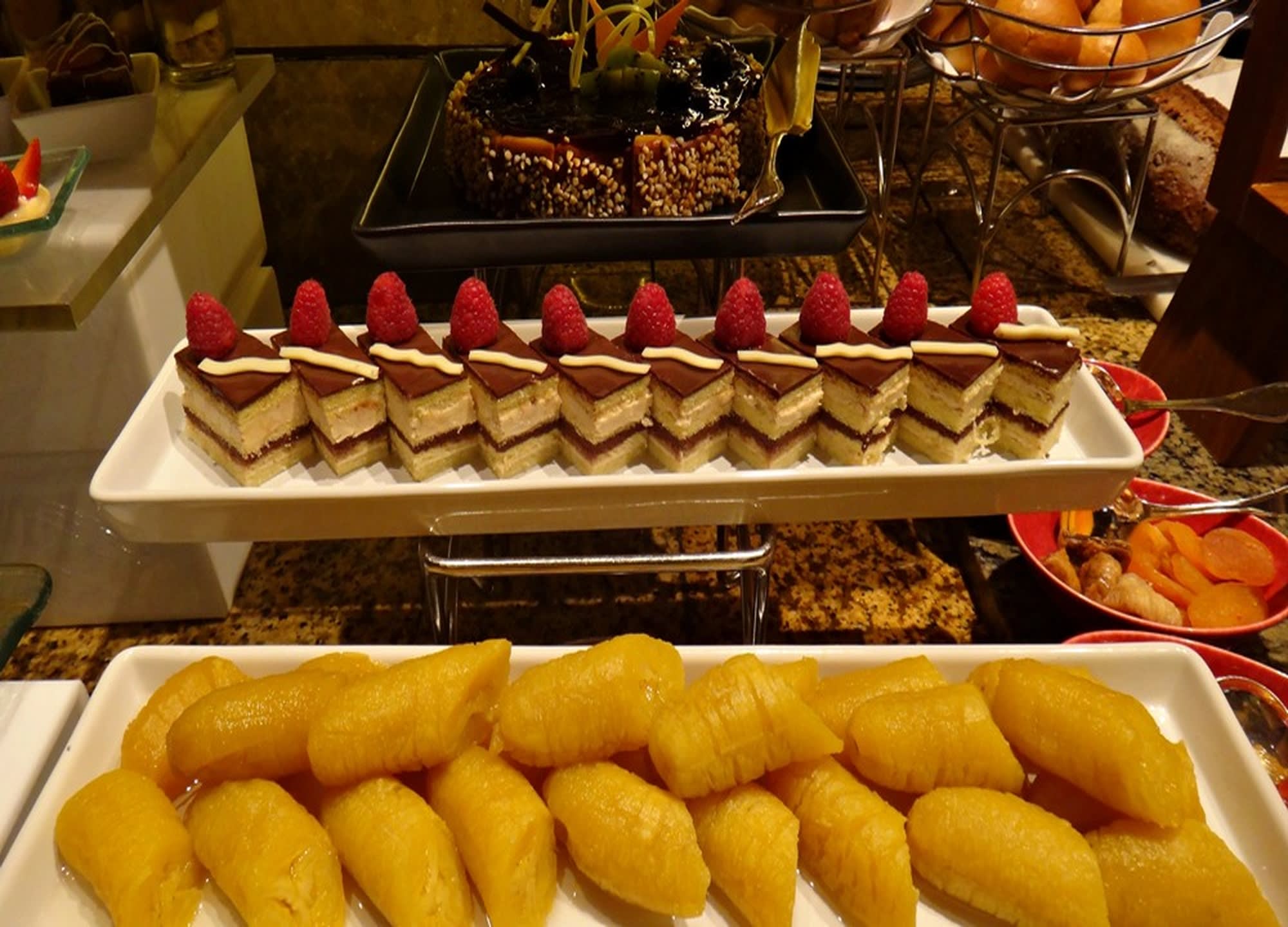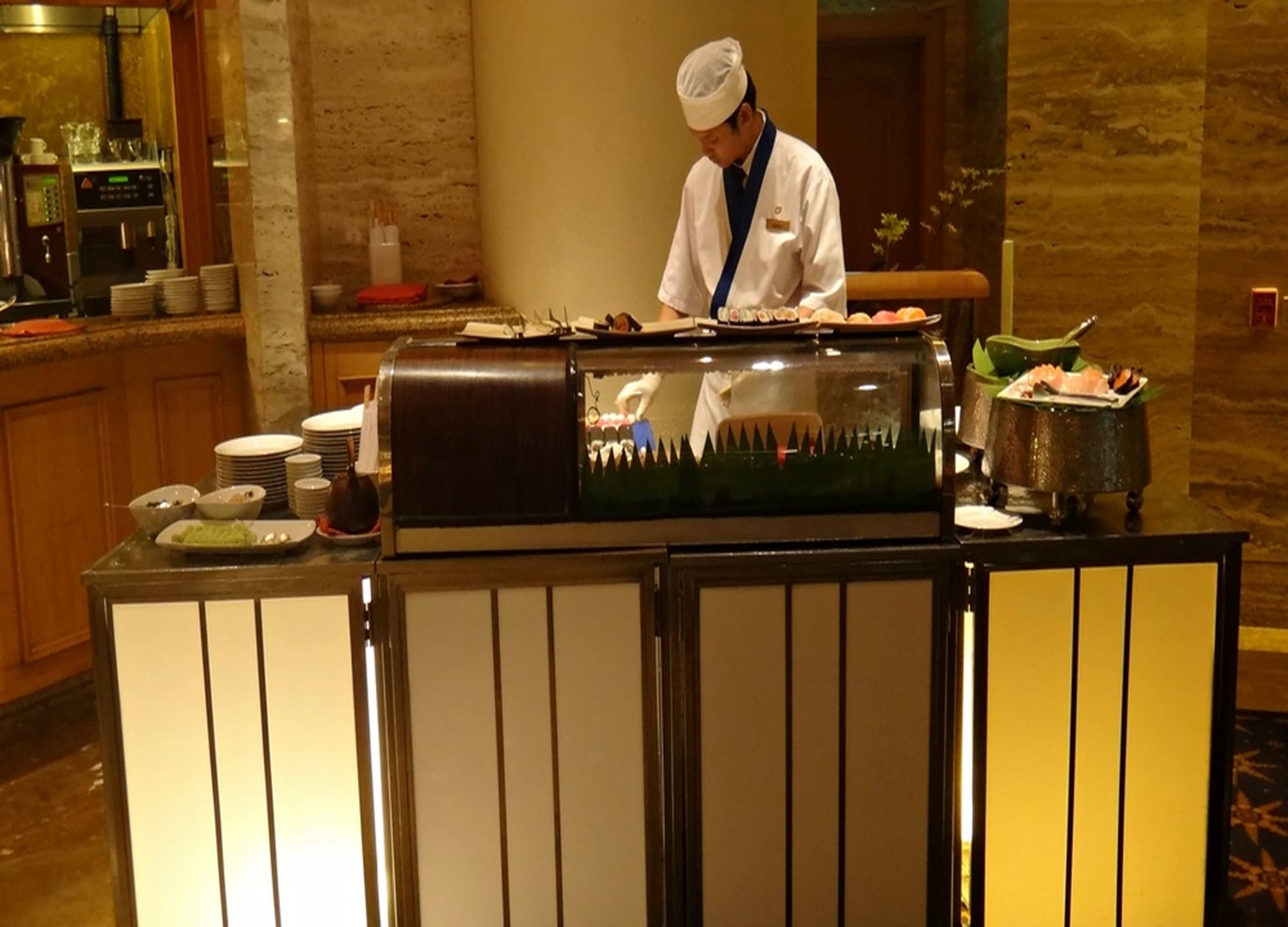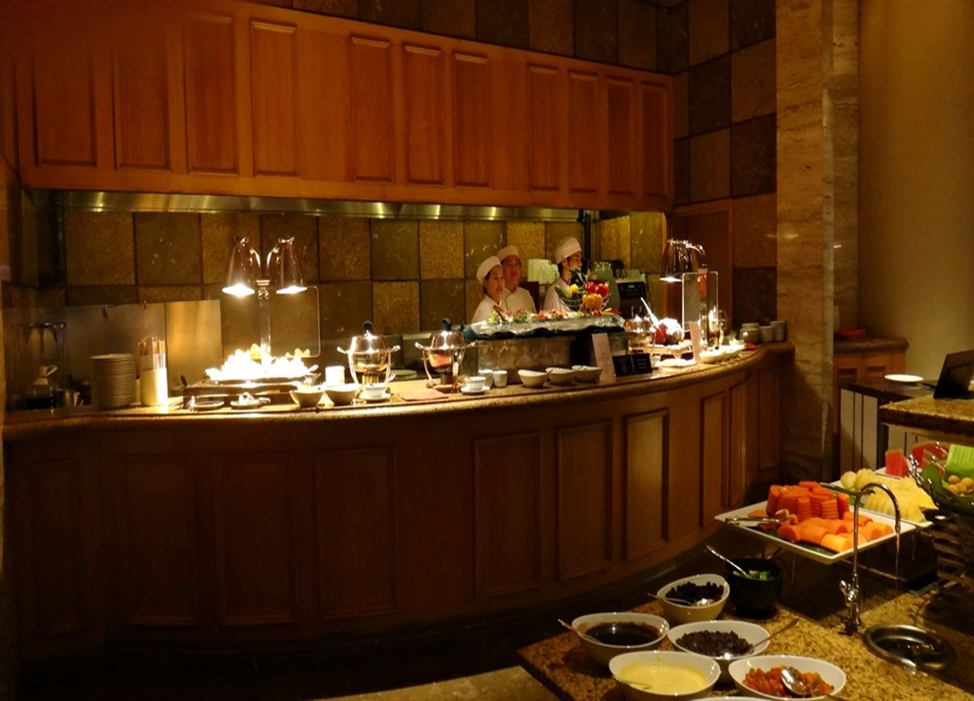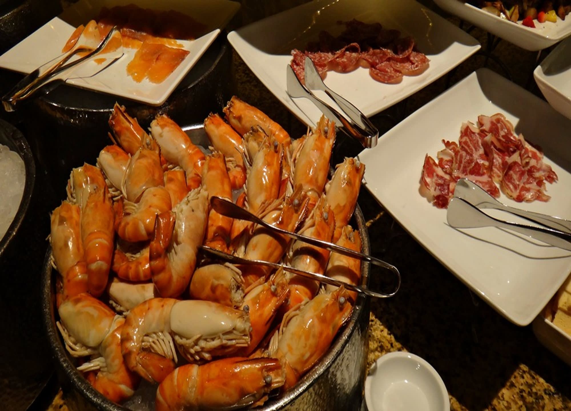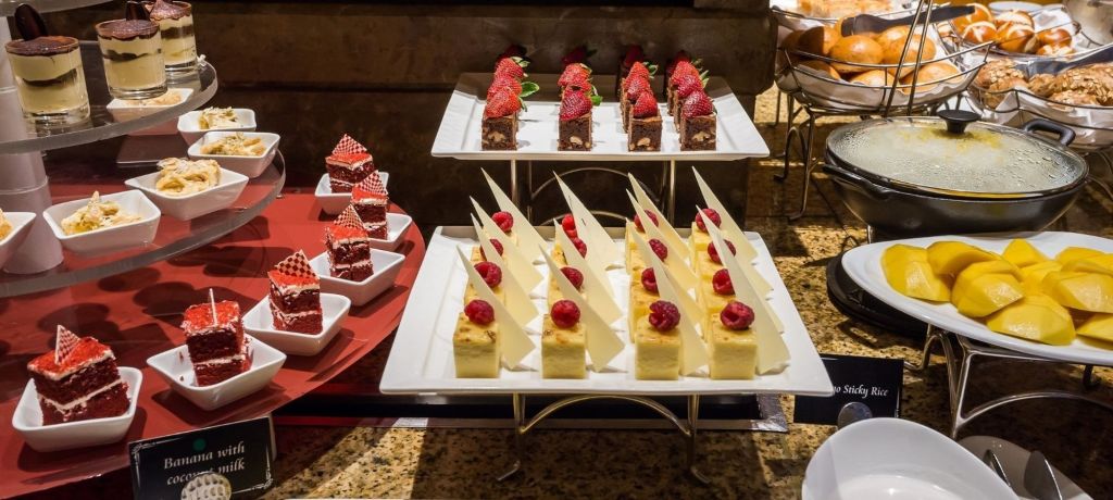 방콕 중심부의 럭셔리 호텔인 쉐라톤 그랑데 수쿰빗에서 진행되는 뷔페입니다.