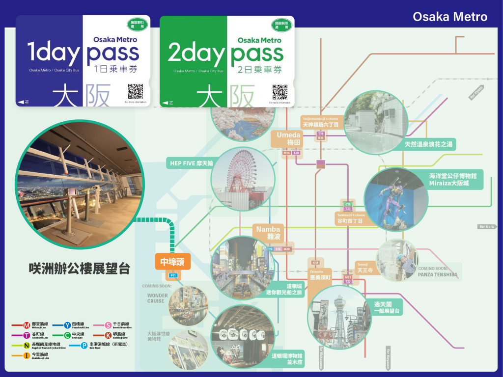 2. 사키시마 코스모타워 전망대 사전 예매권 & Osaka Metro2day pass