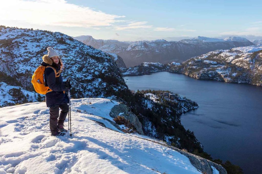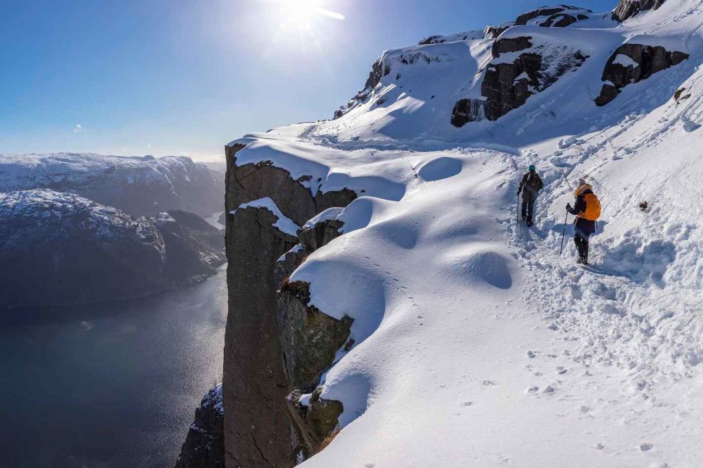 눈과 얼음이 있기 때문에 겨울철(1월~3월)에는 가이드 없이 프라이케스톨렌을 하이킹하는 것을 추천하지 않습니다. 전문 가이드는 얼어붙은 풍경과 겨울의 급변하는 기상 조건에 안전하게 대처할 수 있도록 훈련받았습니다. 가이드는 내비게이션, 안전, 응급처치 및 겨울철 야외 활동에 필요한 모든 장비를 휴대합니다.